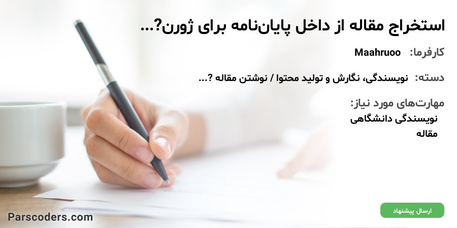 دنبال شخصی هستم که از داخل پایاننامهم بتونه یک مقالهی با کیفیت و عالی برای ژورنال مورد نظر استخراج کنه.