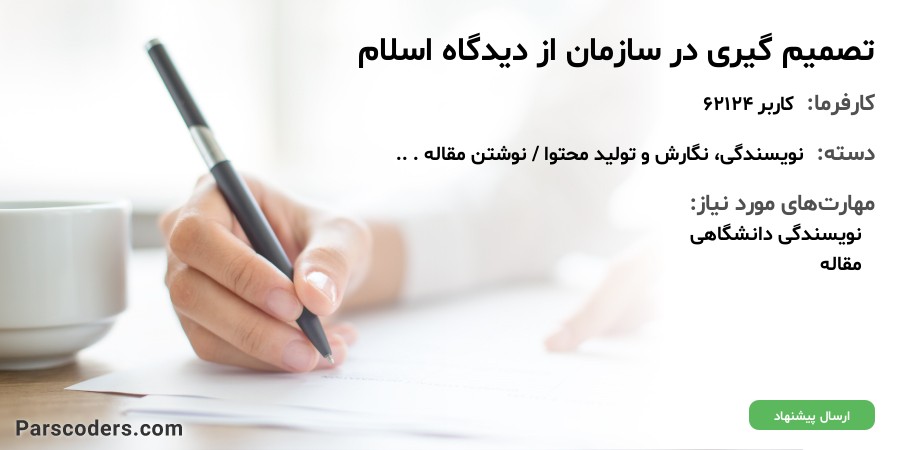 متأسفانه مهلت ارسال پیشنهاد این پروژه به پایان رسیده و پروژه بسته شده است؛ اما فرصتهای متعددی در سایت موجود میباشد.