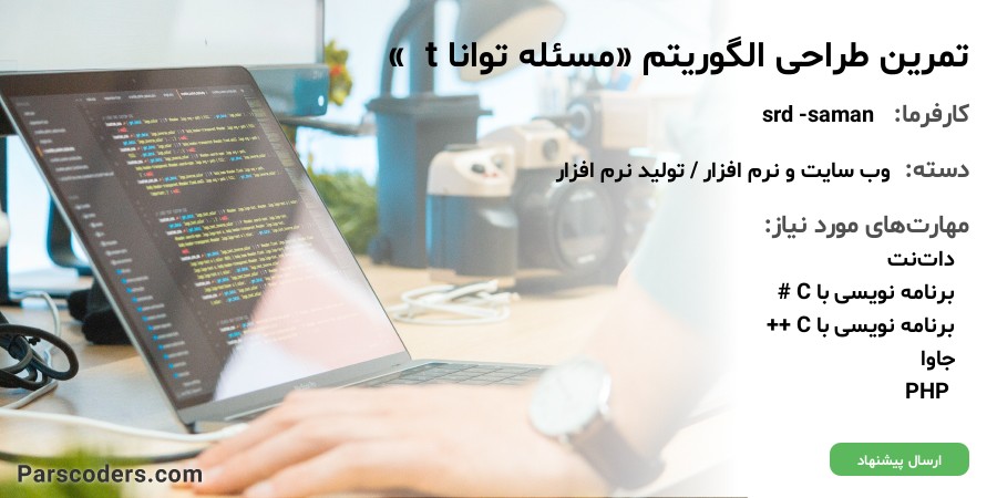 سلام .... این تمرین درس طراحی الگوریتم هستش اطلاعات کامل در فایل پیوست موجوده فقط این موارد رو قبل از پیشنهاد دادن در نظر بگیرید : ۱-مهمترین چیز توضیح خود مسئله و روش حل اون ۲-برنامه نوشته شده هم باید تشریح داده بشه ۳- کامل طراحی بشه و برای تمام مثال ها جواب بده ! این ۳ مورد رو حتما در نظر بگیرید خیلی ممنونم از وقتی که گذاشتین