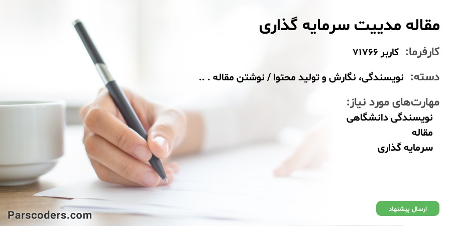 متأسفانه مهلت ارسال پیشنهاد این پروژه به پایان رسیده و پروژه بسته شده است؛ اما فرصتهای متعددی در سایت موجود میباشد.