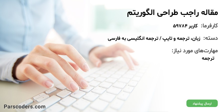متأسفانه مهلت ارسال پیشنهاد این پروژه به پایان رسیده و پروژه بسته شده است؛ اما فرصتهای متعددی در سایت موجود میباشد.