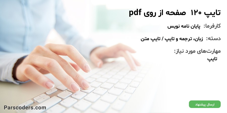 فایل که برا تایپ گذاشتم بسیار مرتب باید تایپ شه و به کمترین پیشنهاد واگذار می گردد با هر تایپیستی به توافق رسیدم 6تا فایل 20 صفحه ای میزارم که رتبش ره بالا(لطفا هزینه رو برا کل 120 صفحه بگین و زمانش هم 5روز می باشد)
