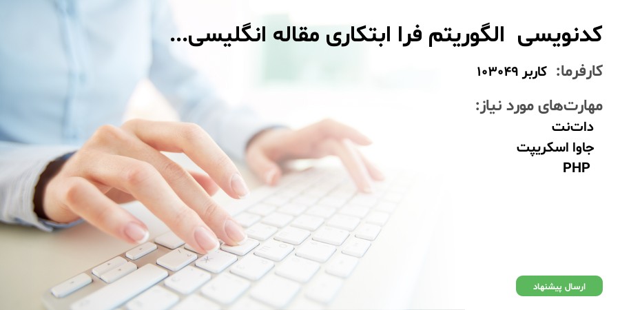متأسفانه مهلت ارسال پیشنهاد این پروژه به پایان رسیده و پروژه بسته شده است؛ اما فرصتهای متعددی در سایت موجود میباشد.