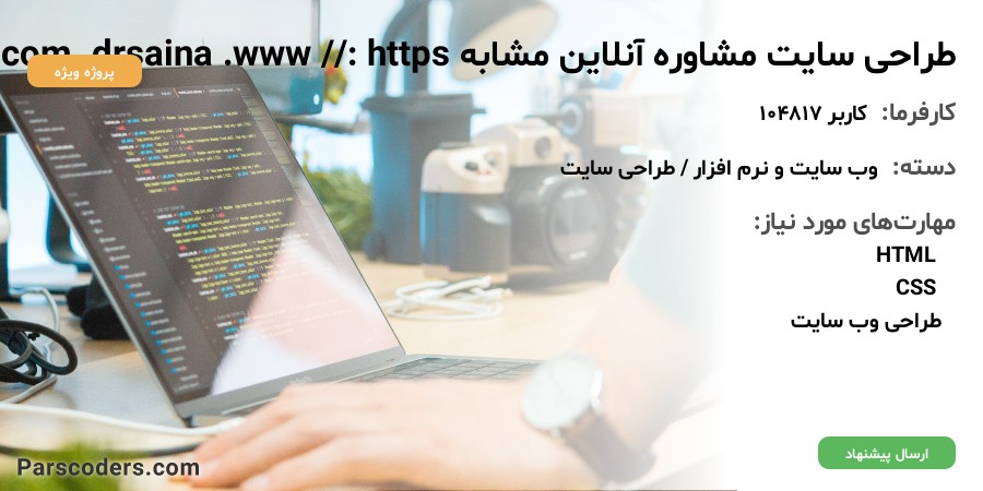 نمونه مشابه این سایت، سایت https://www.drsaina.com/ می باشد البته نیازی به بخش تبلیغات مربوط به مطب و داروخانه و ... نیست همچنین صرفاً نوبت دهی برای تعیین وقت مشاوران سایت مورد نیاز می باشد