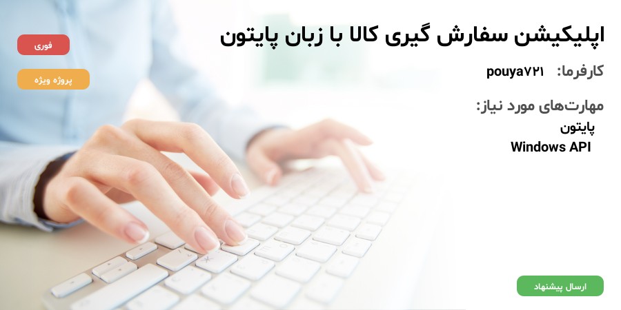 یک اپلیکیشن گرافیکی (ترجیحأ با ماژول qt5) با زبان پایتون که به منظور سفارش گیری است و با یک دیتابیس که در آن مشتری ها و کالاها تعریف شده اند ارتباط برقرار میکند. همچنین امکاناتی مثل صدور فاکتور در بخش کلاینت دارد. و در بخش مدیریت کاربران میتوان سفارشات را مدیریت کرد. این برنامه برای پروژه پایان ترم دانشگاه می باشد. لذا تا حد ممکن می خواهم کد های برنامه با توضیح باشد. بنده تا حدی با این زبان آشنایی دارم.