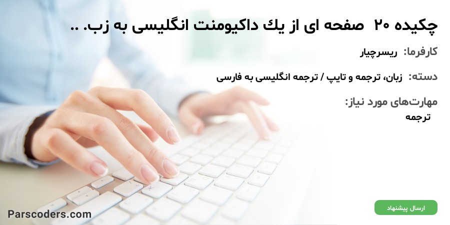 به ضمیمه یک داکیومنت قرار داره که باید خوانده بشه. و در 20 صفحه معنا و مفهوم اون به فارسی خلاصه بشه و قرار بگیره. این موارد شامل چکیده؛ نتیجه گیری و موارد مهم هست.