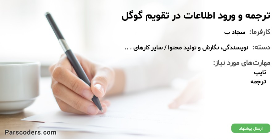 مثلا توی این سایت تاریخ 17 می رو انتخاب میکنید. نوشته : Work From Home Day، شما باید این مورد رو ترجمه کنید : روز کار کردن از خانه، این روز رو در تاریخ 17 می گوگل کلندری که با شما Share میکنیم با توضیحات انگلیسیش وارد کنید. توضیحاتش نیازی نیست ترجمه بشه.