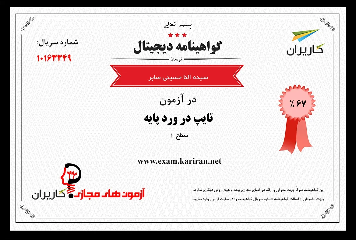 گواهینامه و تست سرعت تایپ بر اساس کلمه در دقیقه