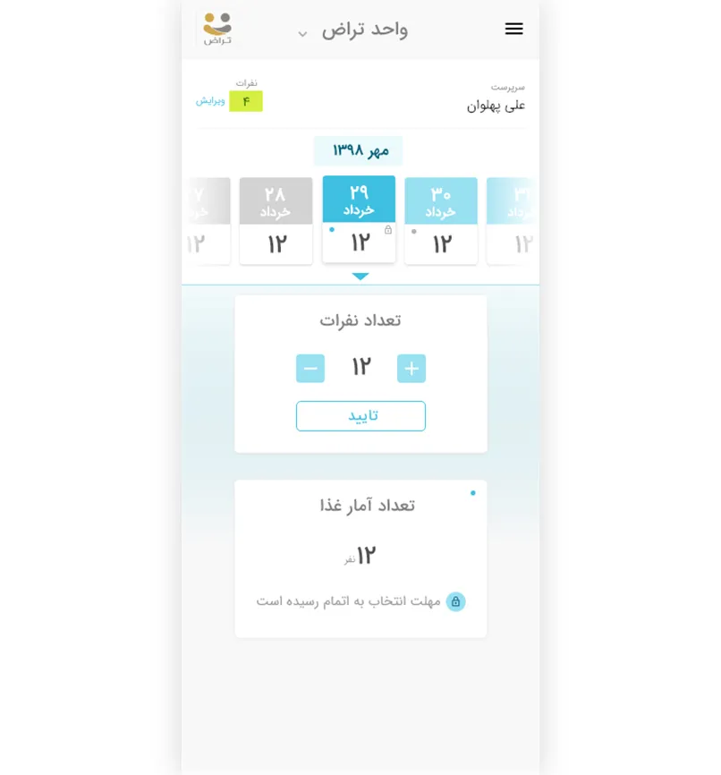 در این نرم افزار مدیر مجموعه مدیریت غذا کارکنانش رو انجام میده.