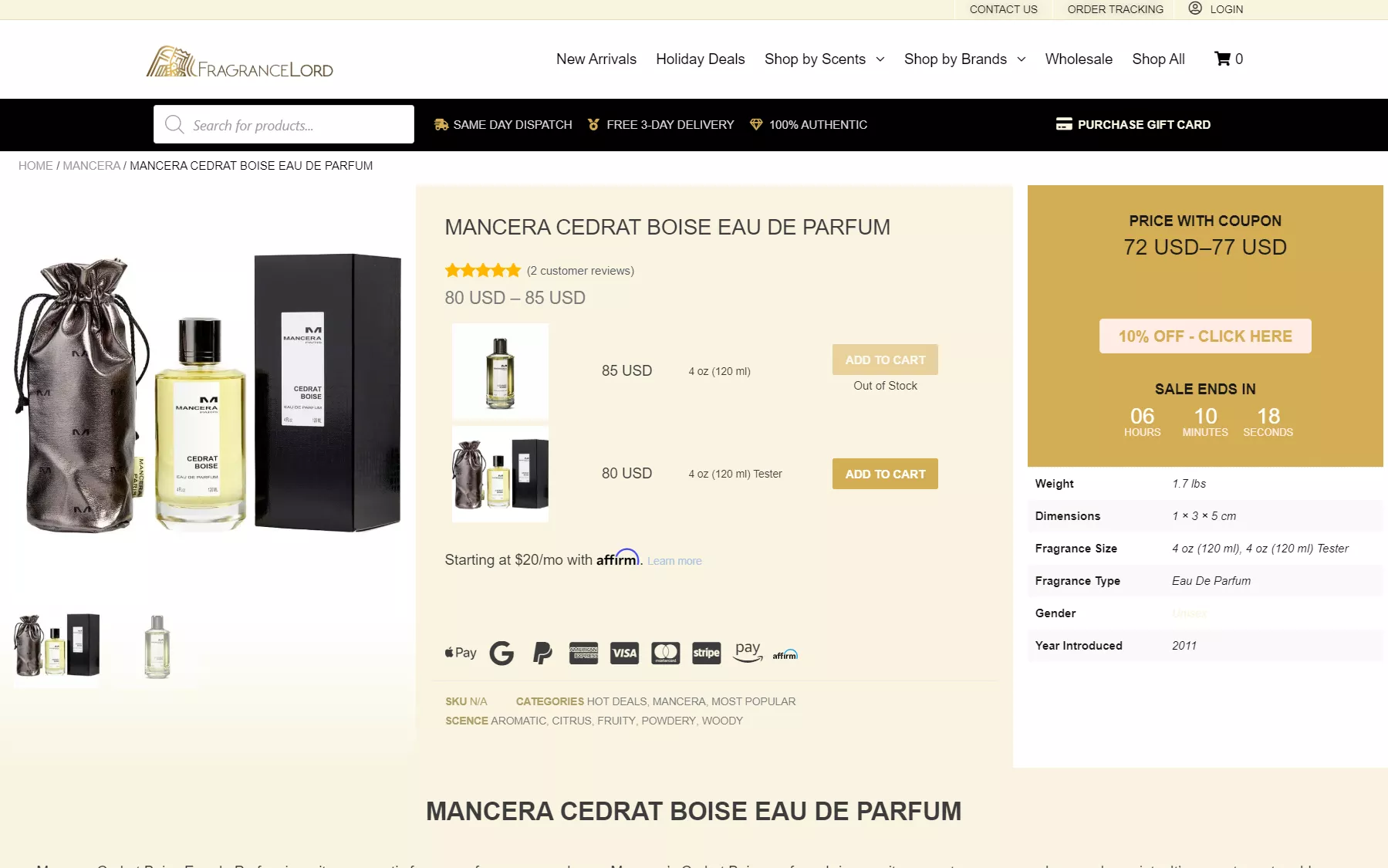fragrancelord.com یک سایت خارجی فروش عطر است. مواردی که برای این سایت انجام شد: