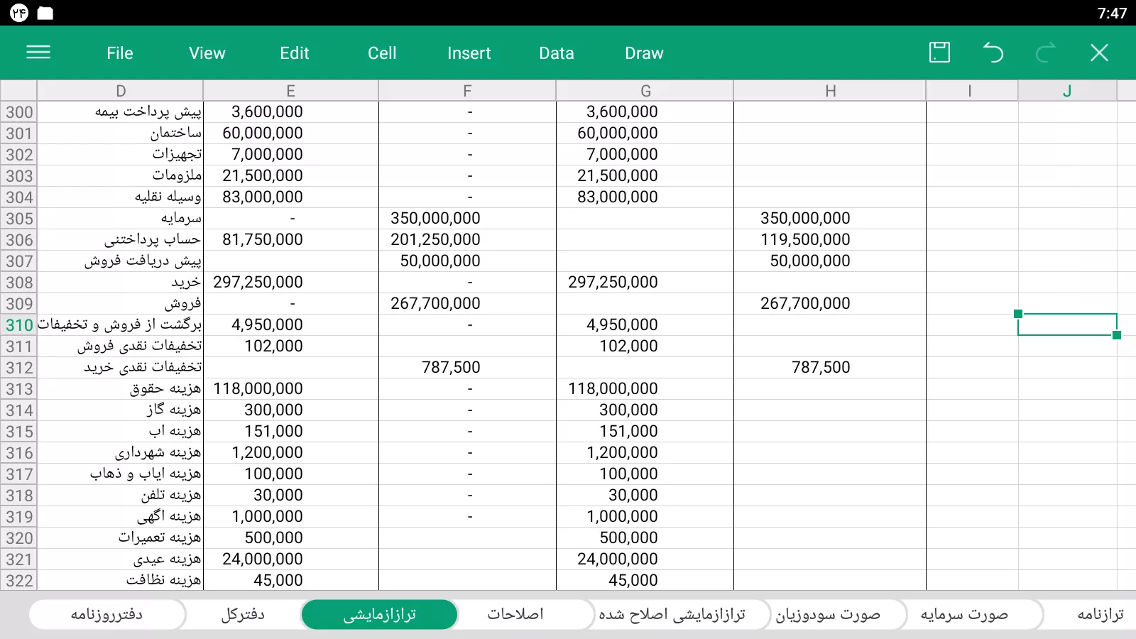 نمونه اکسل صورت های مالی شرکت بازرگانی