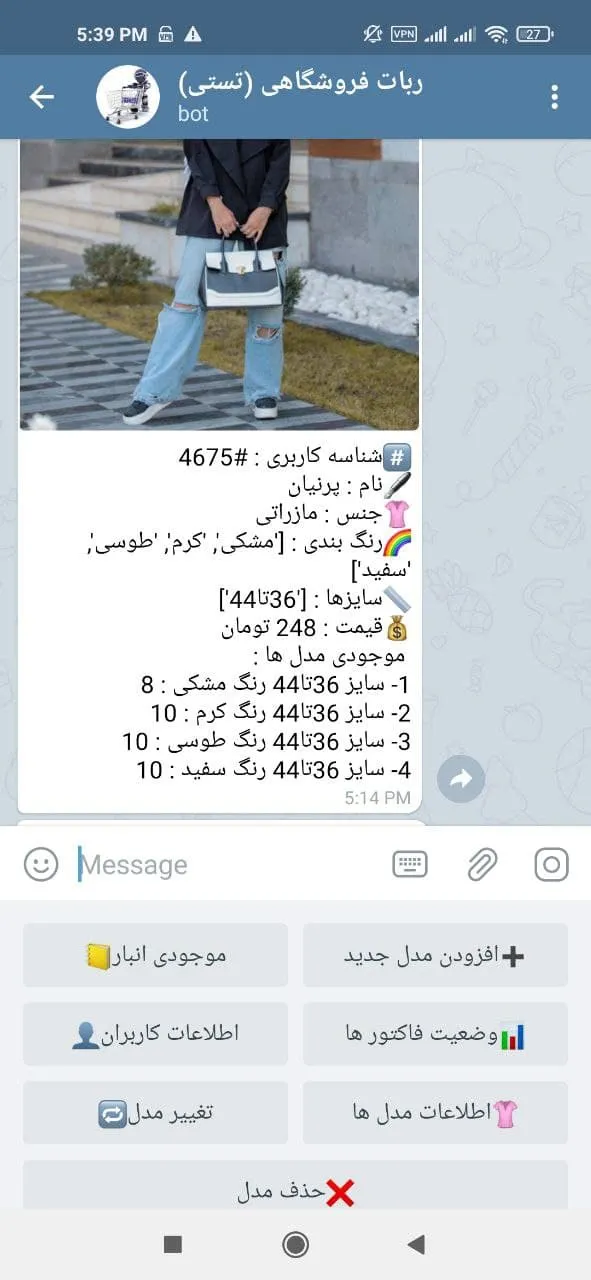 کارهای ربات=ثبت سفارش-موجودی دادن به مشتری-انبارداری-گرفتن هزینه محصول از مشتری و تمام کارهایی که یک سایت فروشگاهی انجام میده در قالب ربات