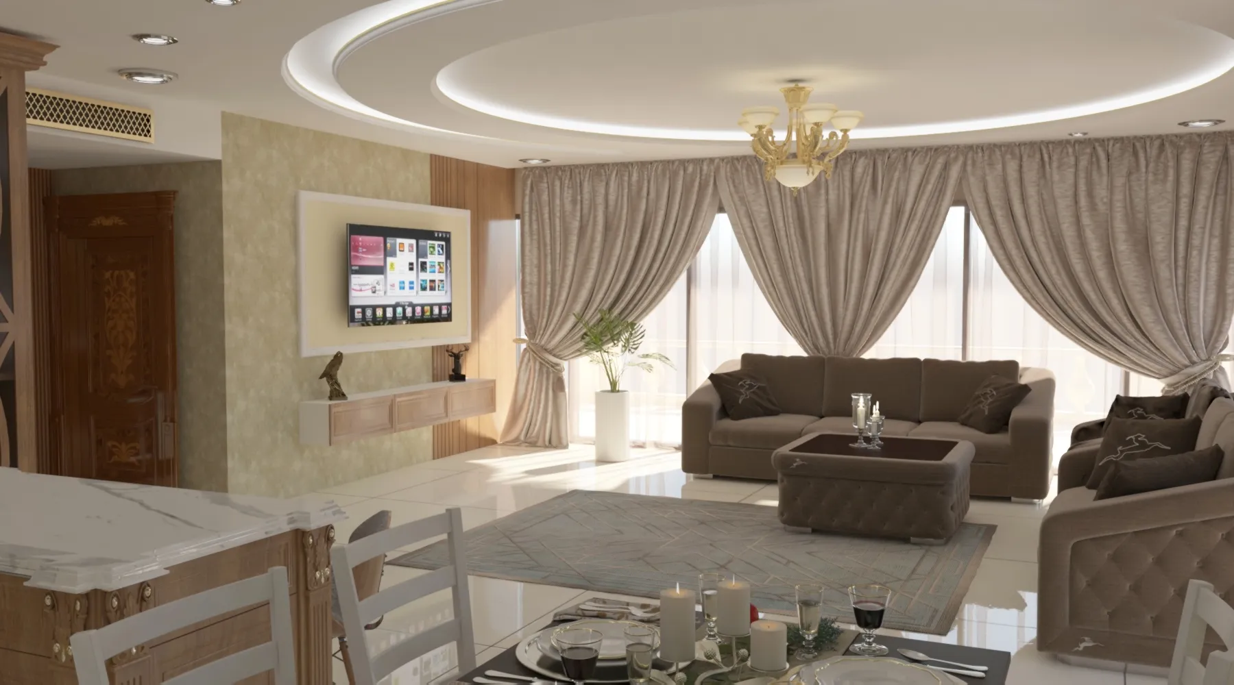 طراحی داخلی کناف کابینت مبلمان تی وی روم