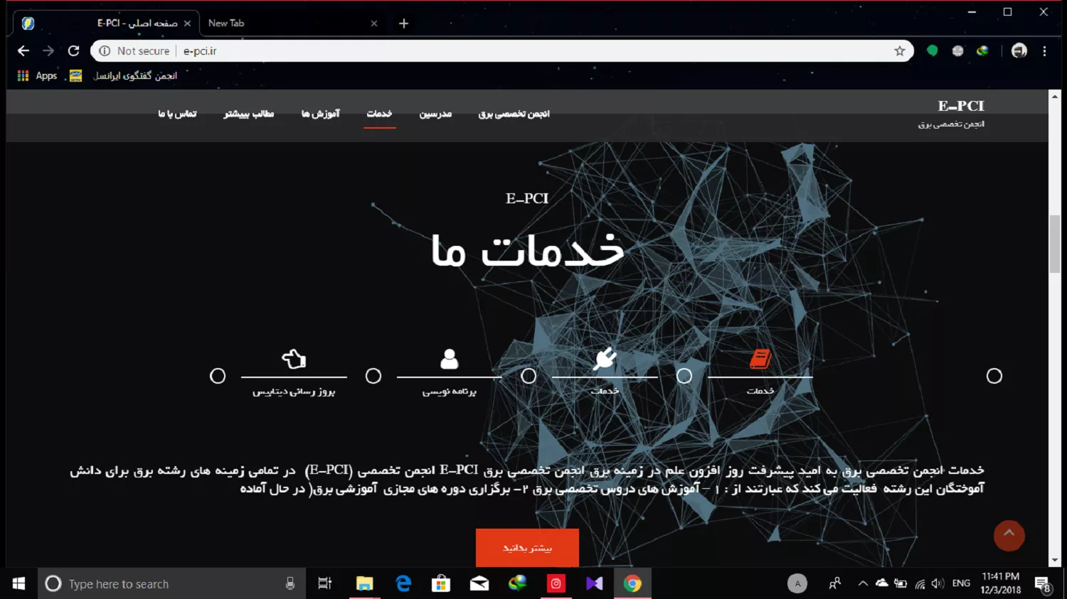 طراحی سایت آموزشی و فروشگاهی انجمن تخصصی برق، برگزاری دوره های مجازی