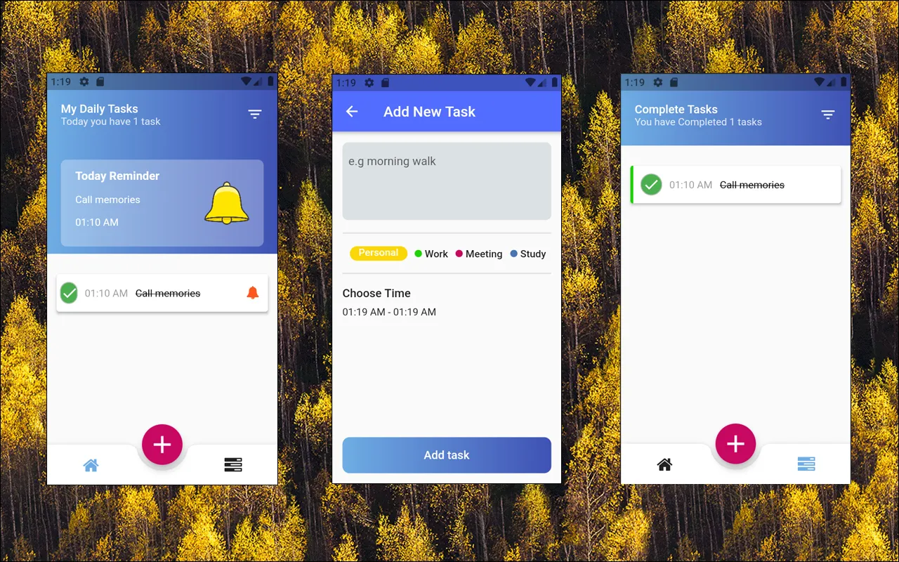 اپلیکیشن Daily task برای مدیریت برنامه روزانه با قابلیت دسته بندی والارم وذخیره برنامه ها در دسته های مختلف
