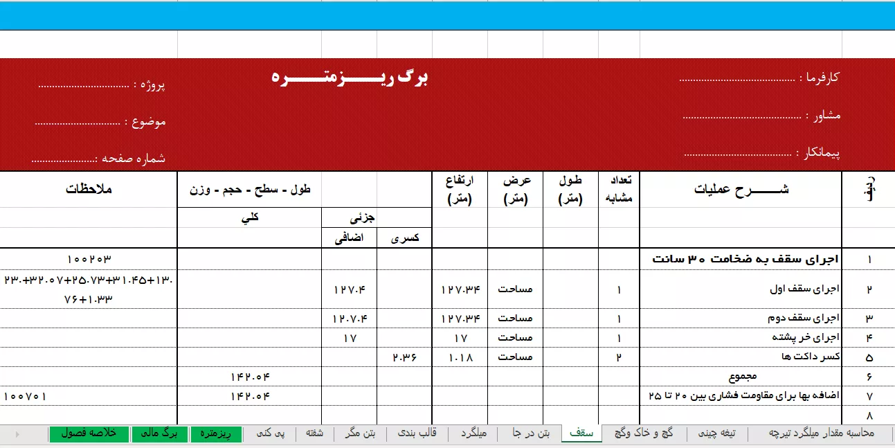 نمونه کار مربوطه فایل متره یک پروژه دانشجویی هست که قسمت سازه آن کار شده به صورت دقیق و به همراه جزییات و توضیحات بود است.