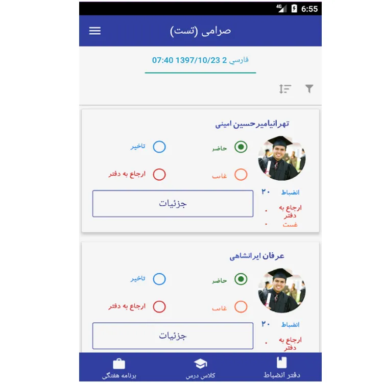 تصاویری از پروژه انجام شده - نسخه معلم نرم افزار مدیریت مدارس