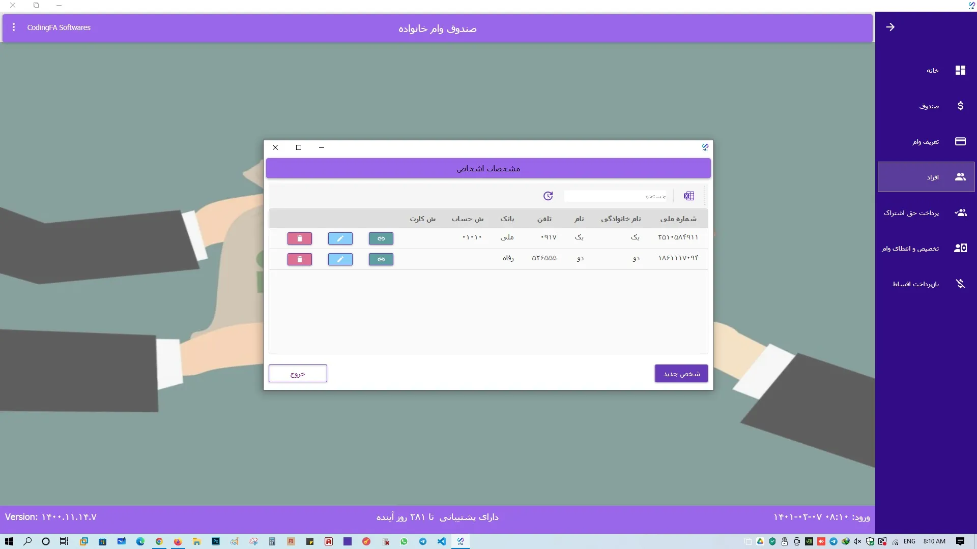 این نرم افزار بعنوان صندوق وام خانواده طراحی شده