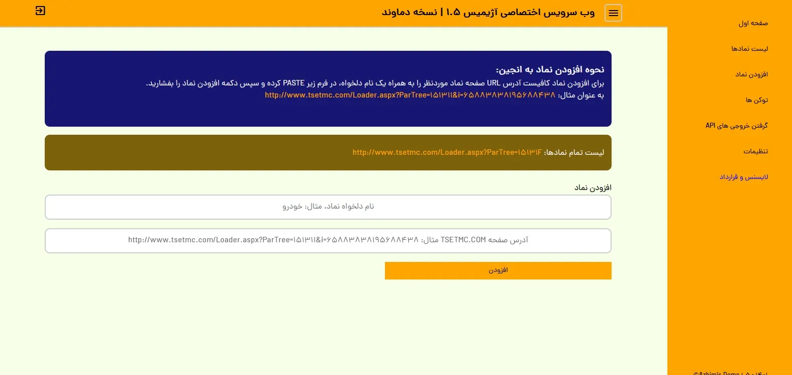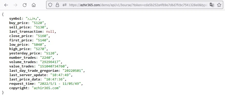اسکریپت اختصاصی دریافت لحظه ای دیتای بورس بصورت json api : آژیمیس