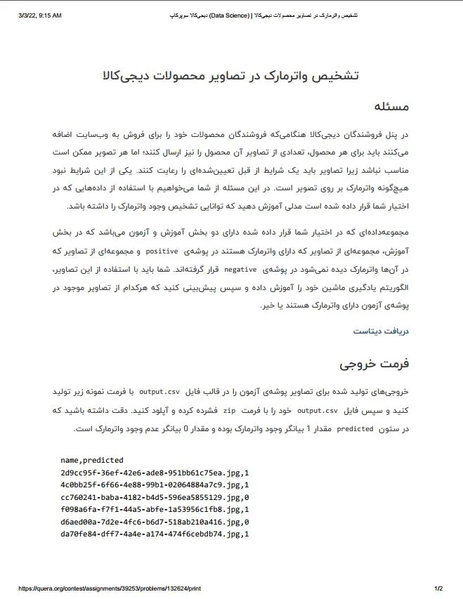 تشخیص واتر مارک در تصاویر محصولات دیجی کالا
