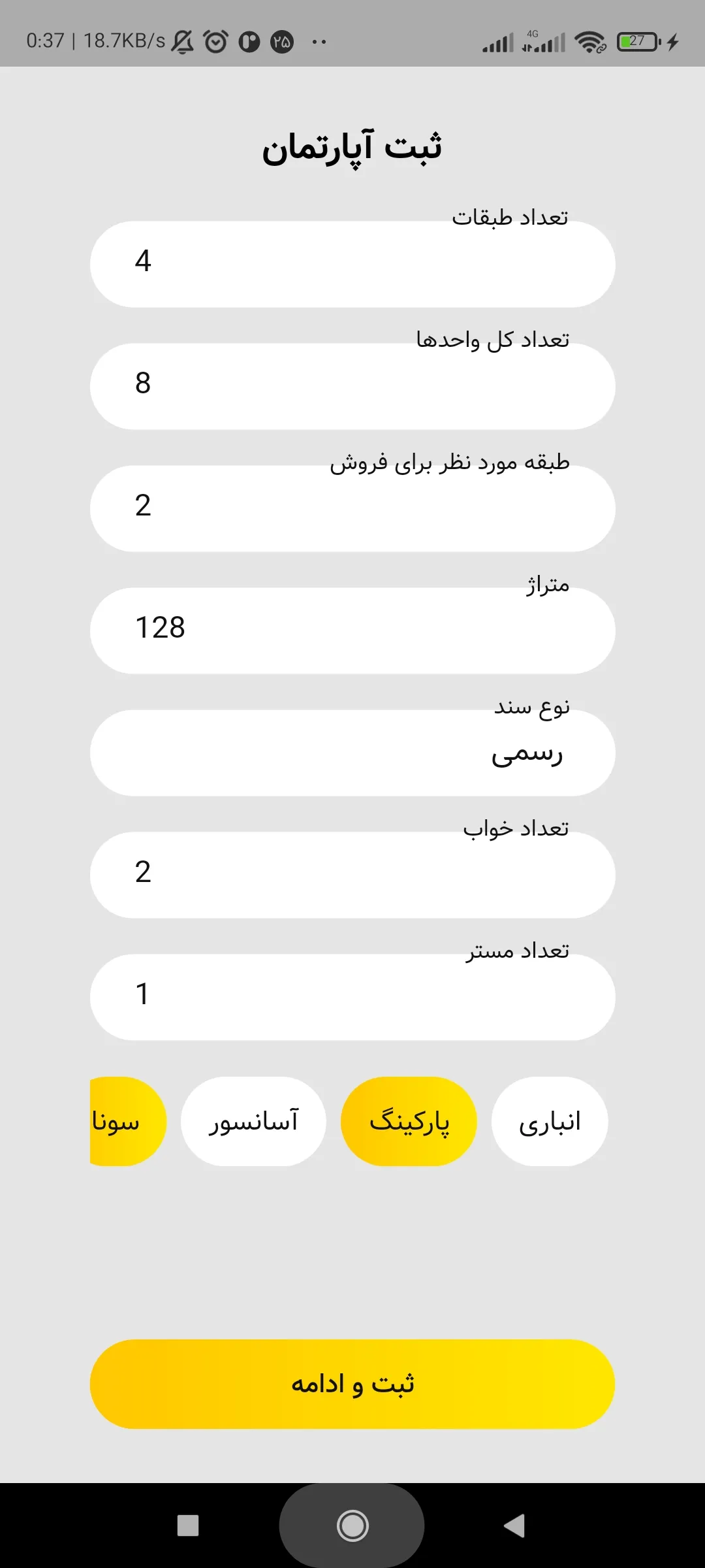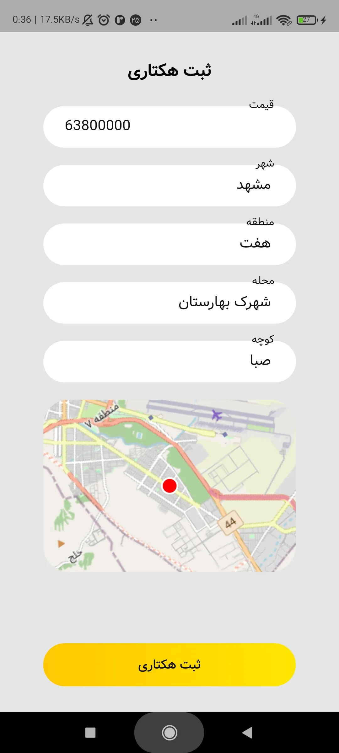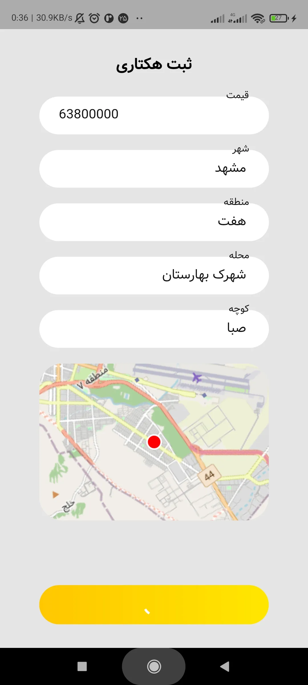 اپلیکیشن املاک اکازیون در دو نسخه اندروید و ios به کمک فلاتر نوشته شد. این اپلیکیشن آنلاین بوده و برای ثبت فایل های املاکی در وبسایت وردپرسی به کار می رود. از موارد موجود در اپلیکیشن انتخاب لوکیشن در نقشه و انیمیشن های متنوع، آپلود تصاویر می باشد.