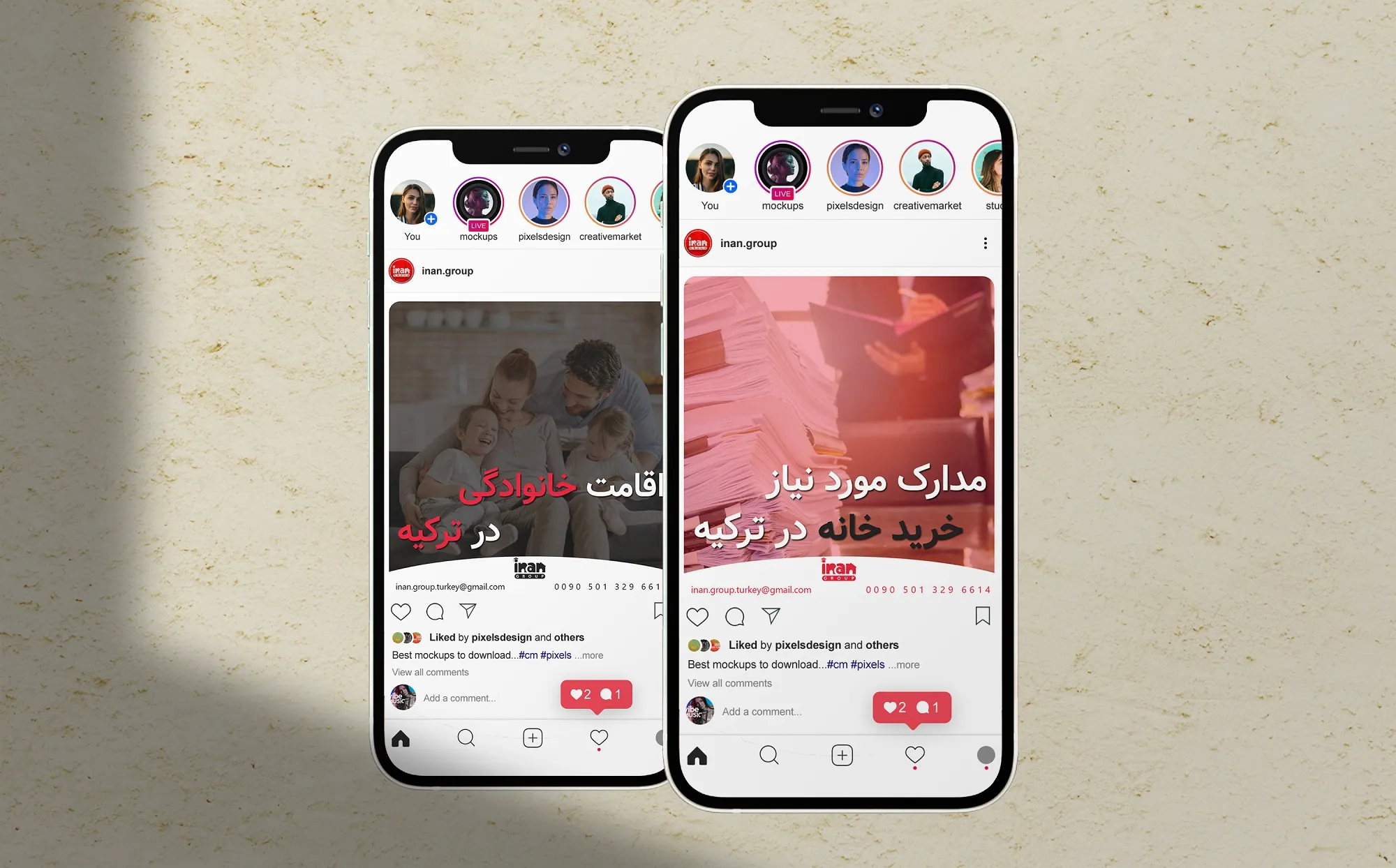 طراحی کاور و تمپلیت پست برای پیج مهاجرتی اینان گروپ