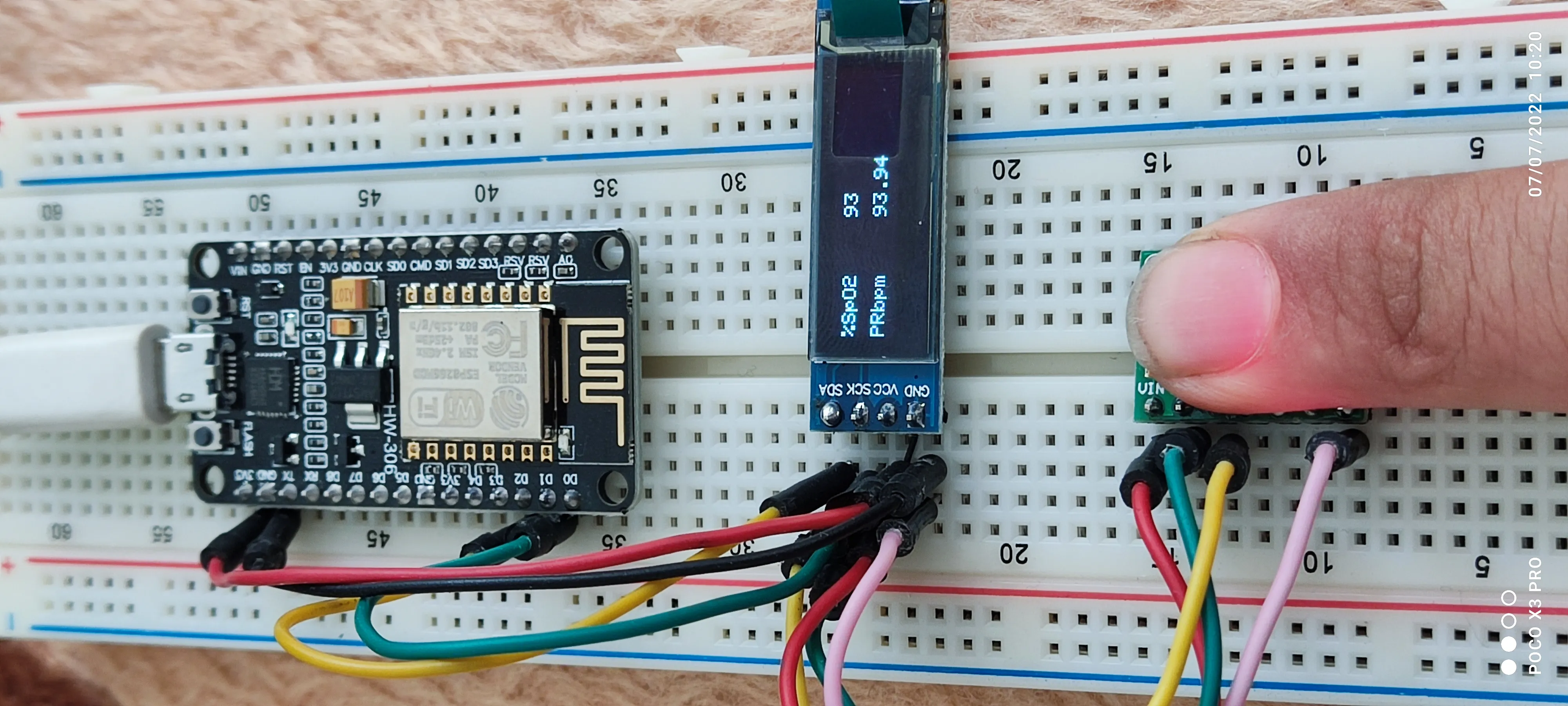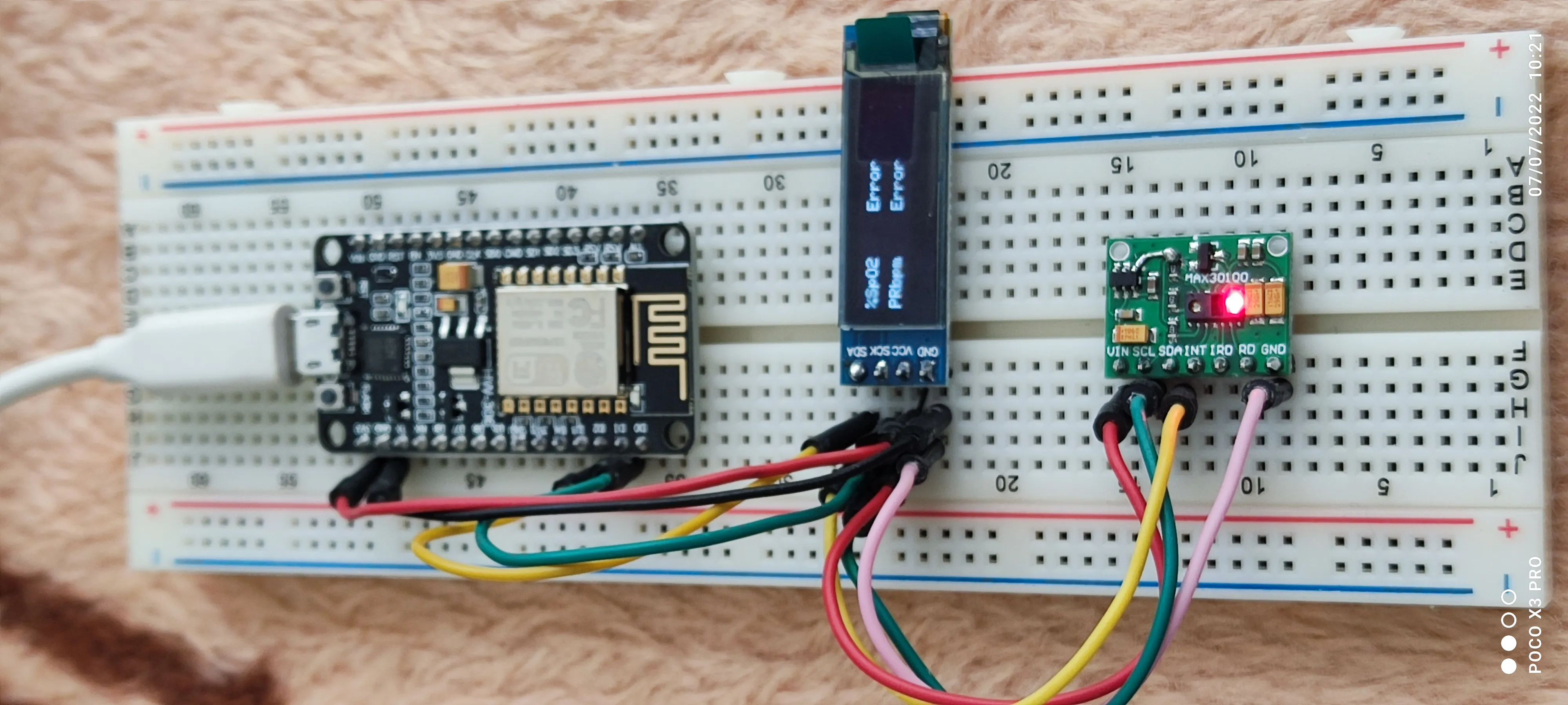 در این پروژه ، ضربان قلب و میزان اکسیژن خون با استفاده از ماژول MAX30100 دریافت میشود