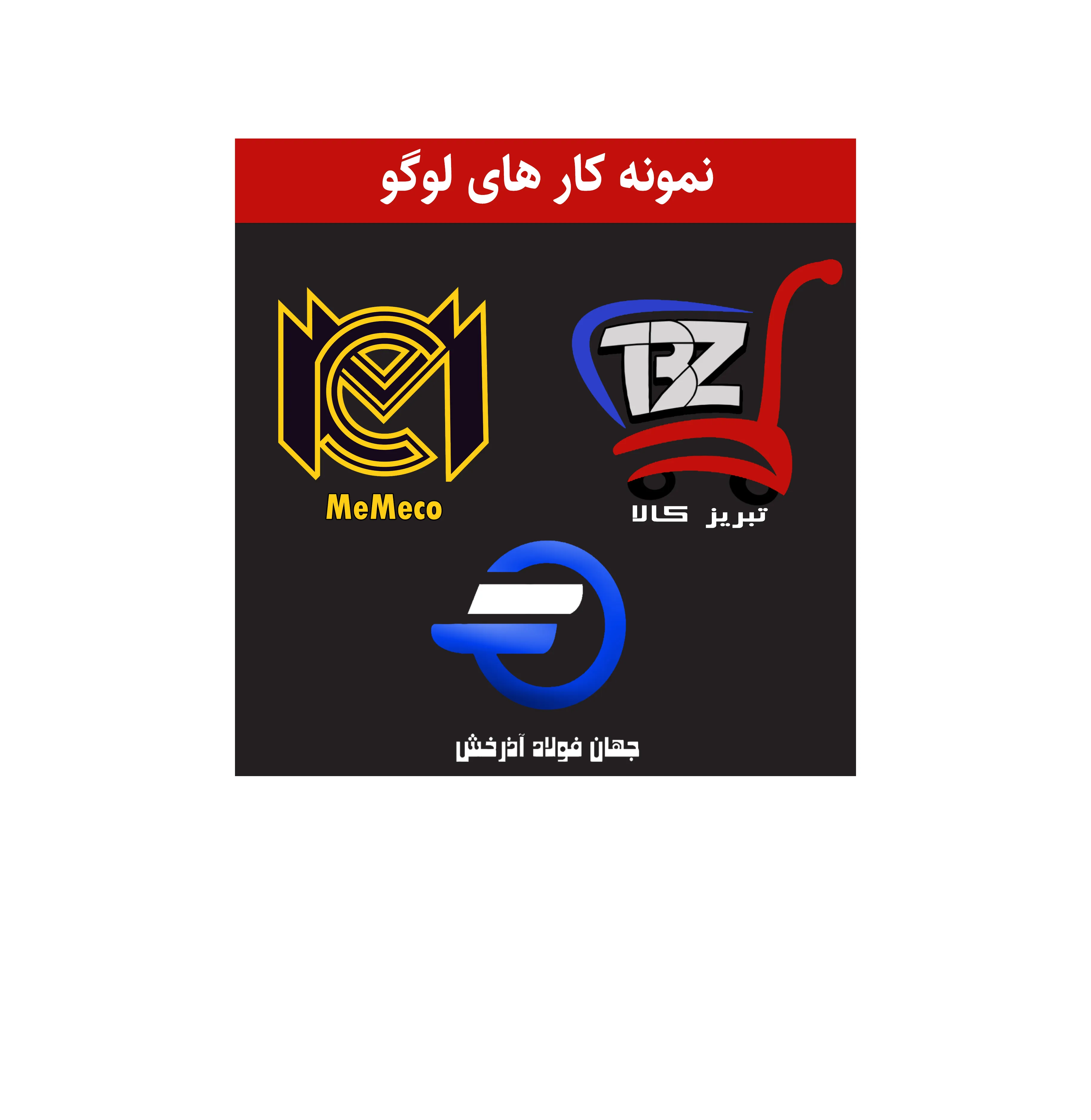 سه مورد نمونه لوگو طراحی شده برای فروشگاه اینترنتی تبریز کالا، کانال یوتیوب میمکو و شرکت جهان فولاد آذرخش