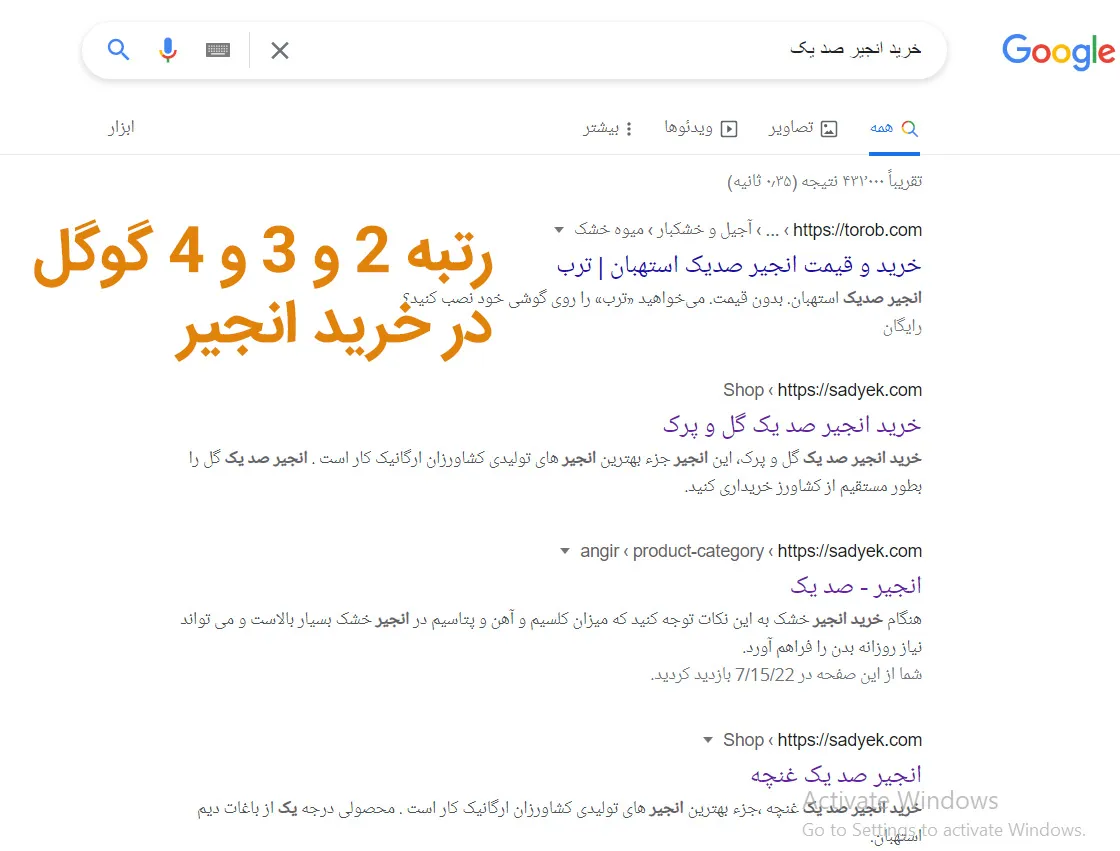 کسب رتبه 2 تا 4 در خرید انجیر برای سایت صد یک