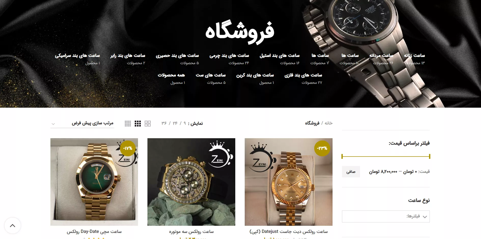 یک سایت فروشگاهی ساعت که به کمک وردپرس انجام شده است.