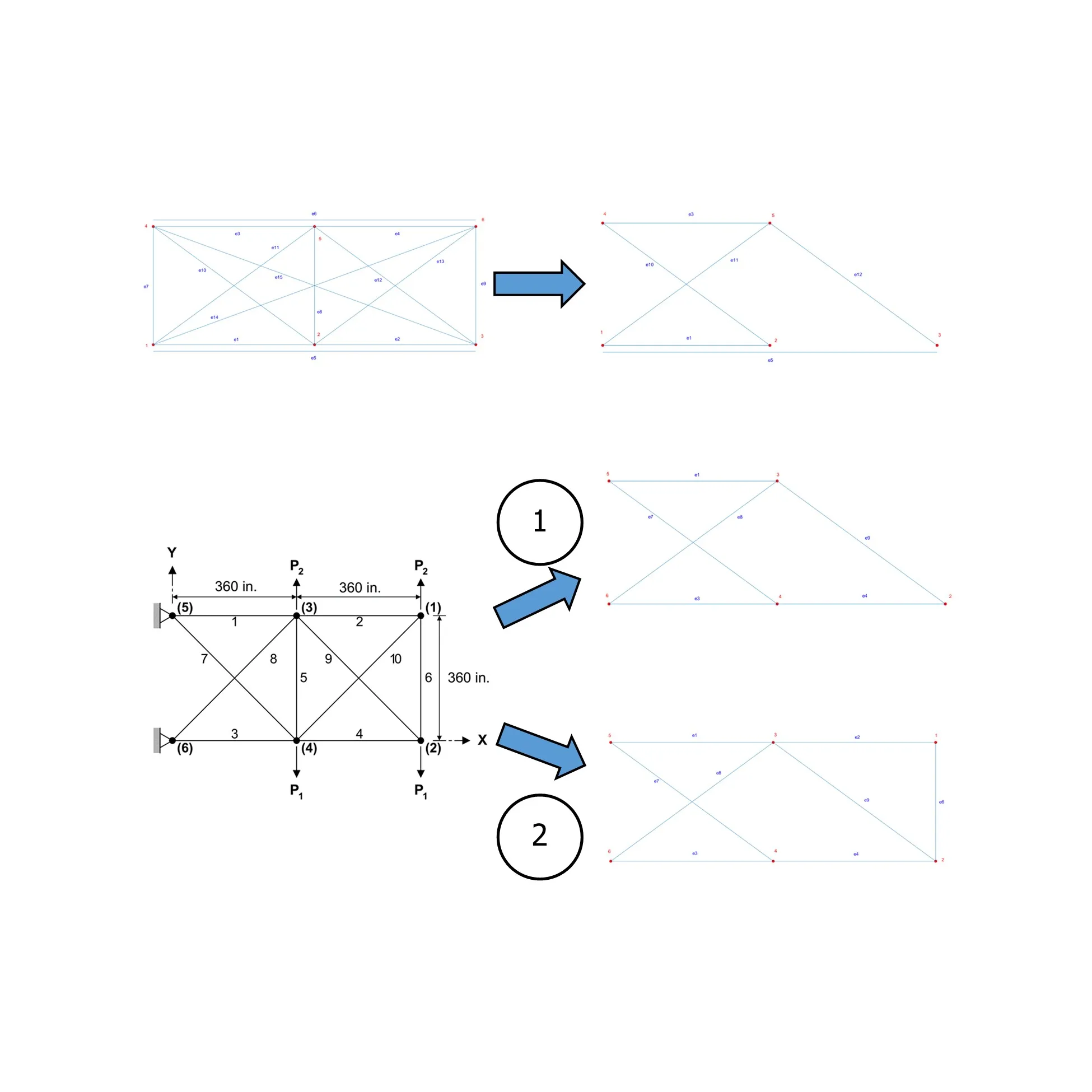 در این کار، با استفاده از الگوریتمهای بهینه یابی فرا ابتکاری سطح مقطع و توپولوژی (بودن یا نبودن اعضاء) بهینه برای سازه های خرپای دوبعدی تعیین شده است.