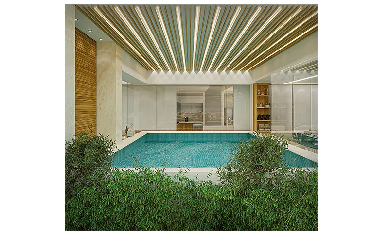 این پروژه دارای 400 متر مربع مساحت و یک استخر داخلی است.