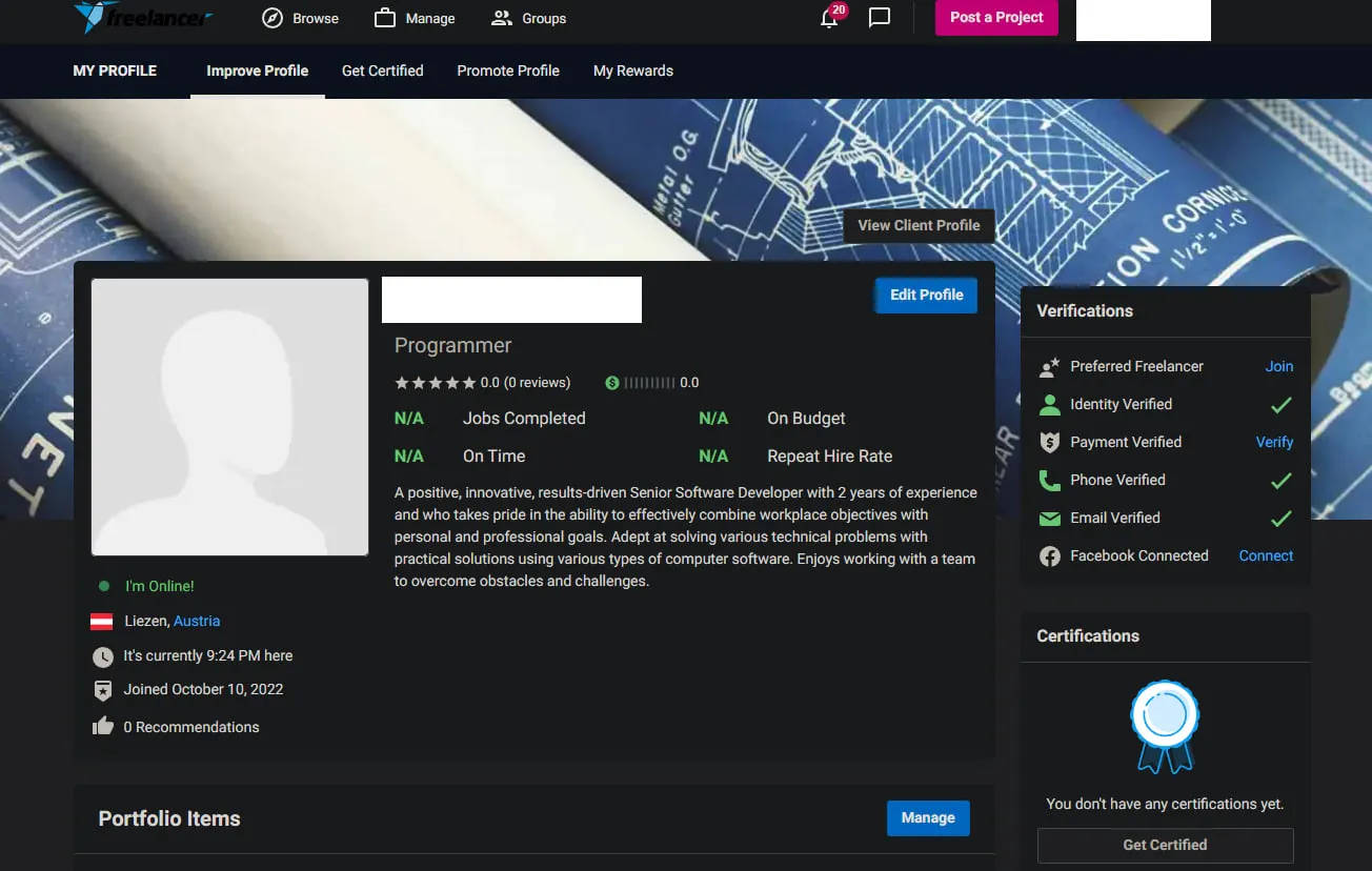 اکانت فریلنسر وریفای شده توسط هویت و مشخصات واقعی رابطمون خارج از کشور
