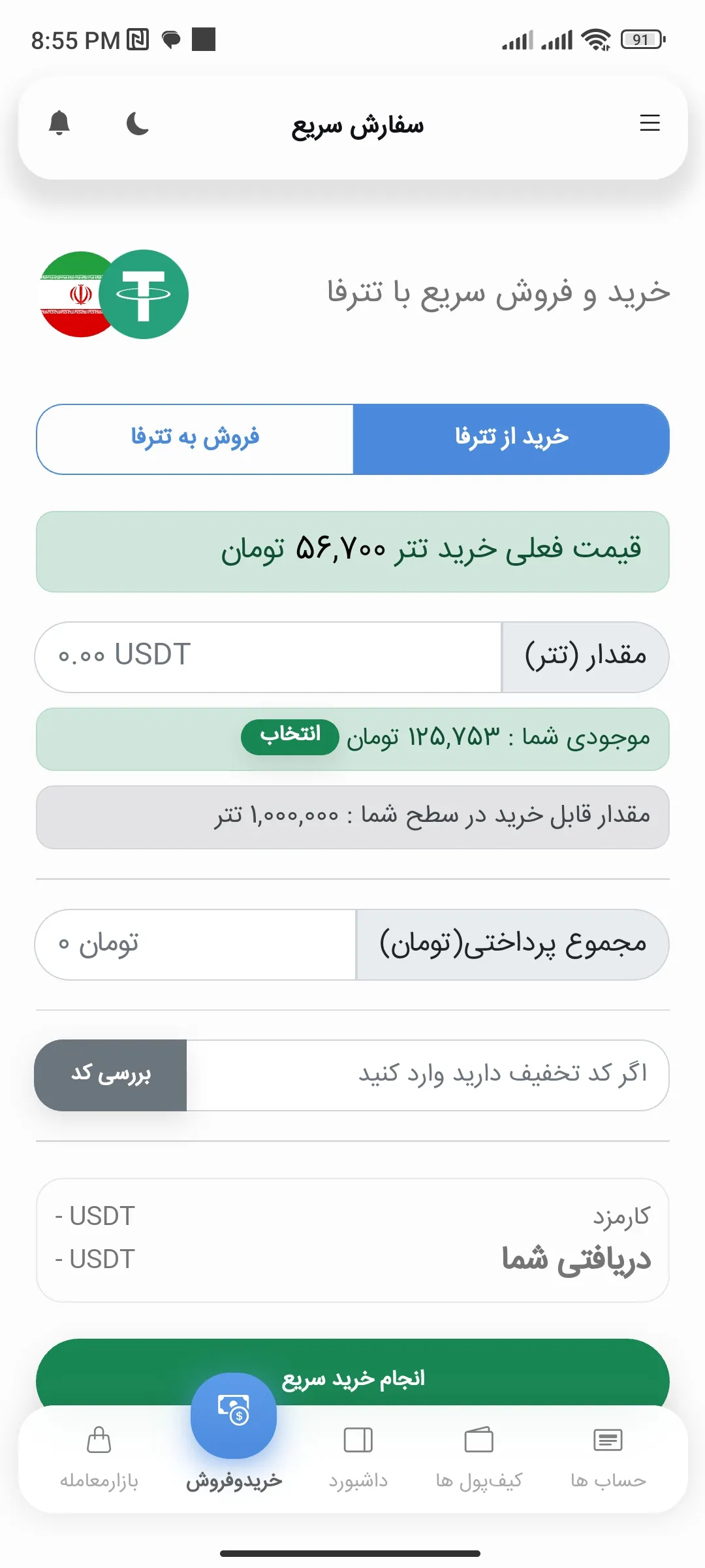 اپلیکیشن صرافی تترفا | برای اندروید و آی او اس