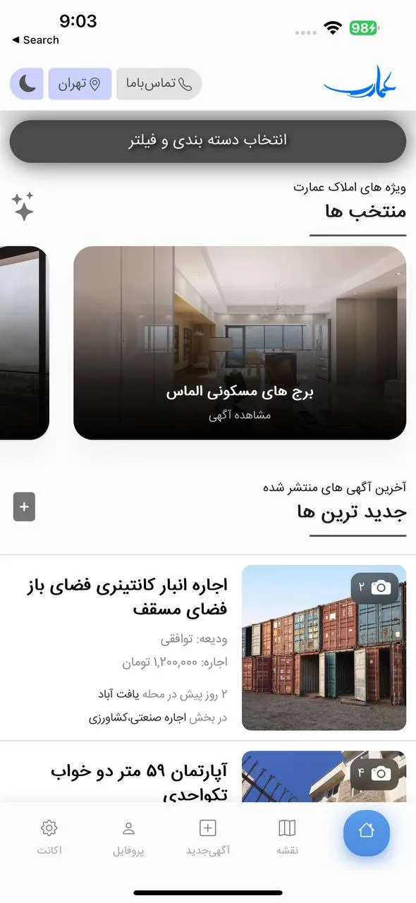 اپلیکیشن اندروید و آی او اس املاک عمارت