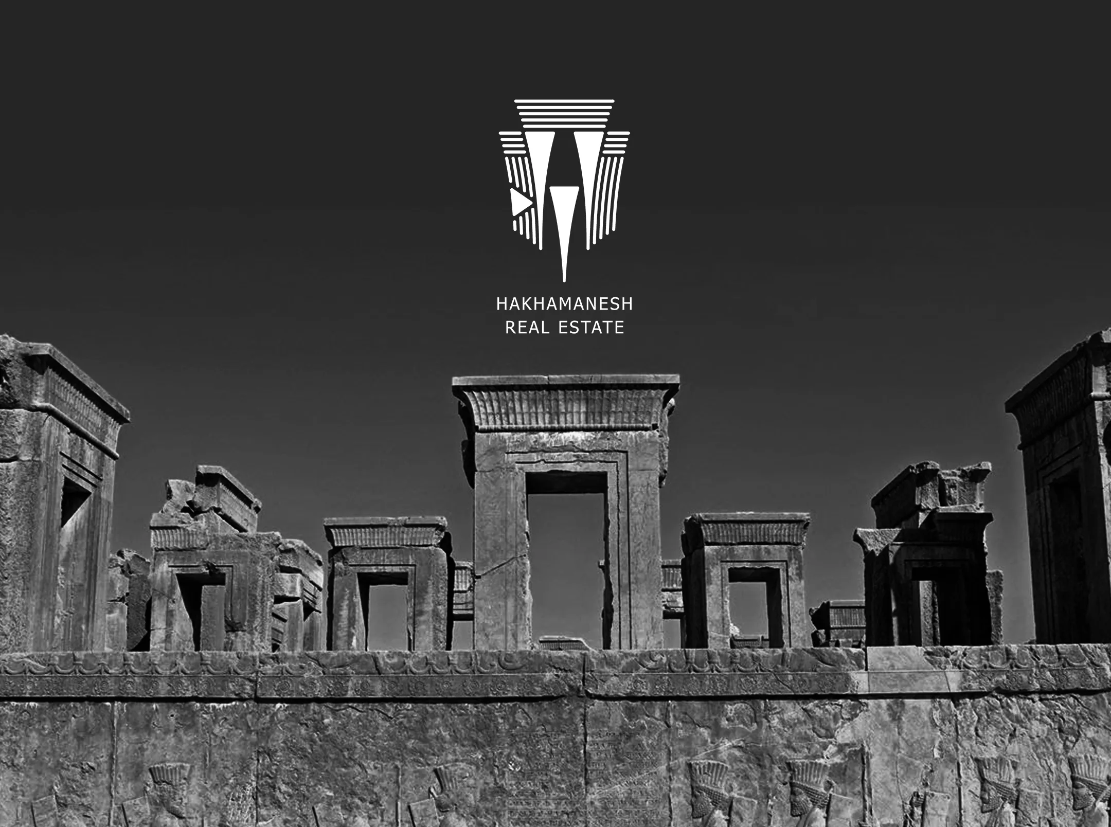 طراحی هویت بصری و نشان پروژه هخامنش با الگوبرداری از زندگی باستانی و معماری دوره هخامنشیان.