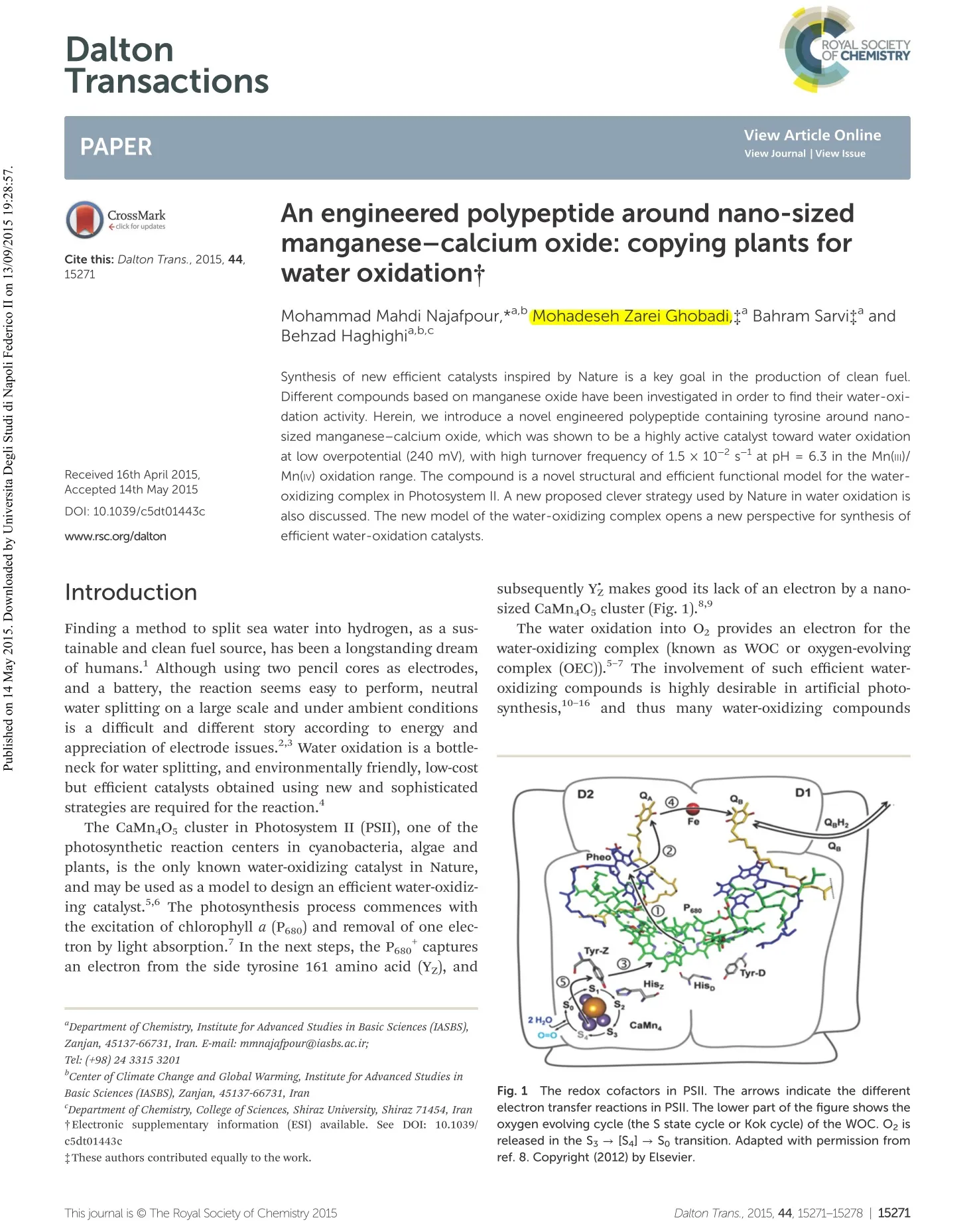 تولید انرژی پاک با سنتز نانومواد و تقلید از واکنش فتوسنتز به کمک روش الکتروشیمیایی