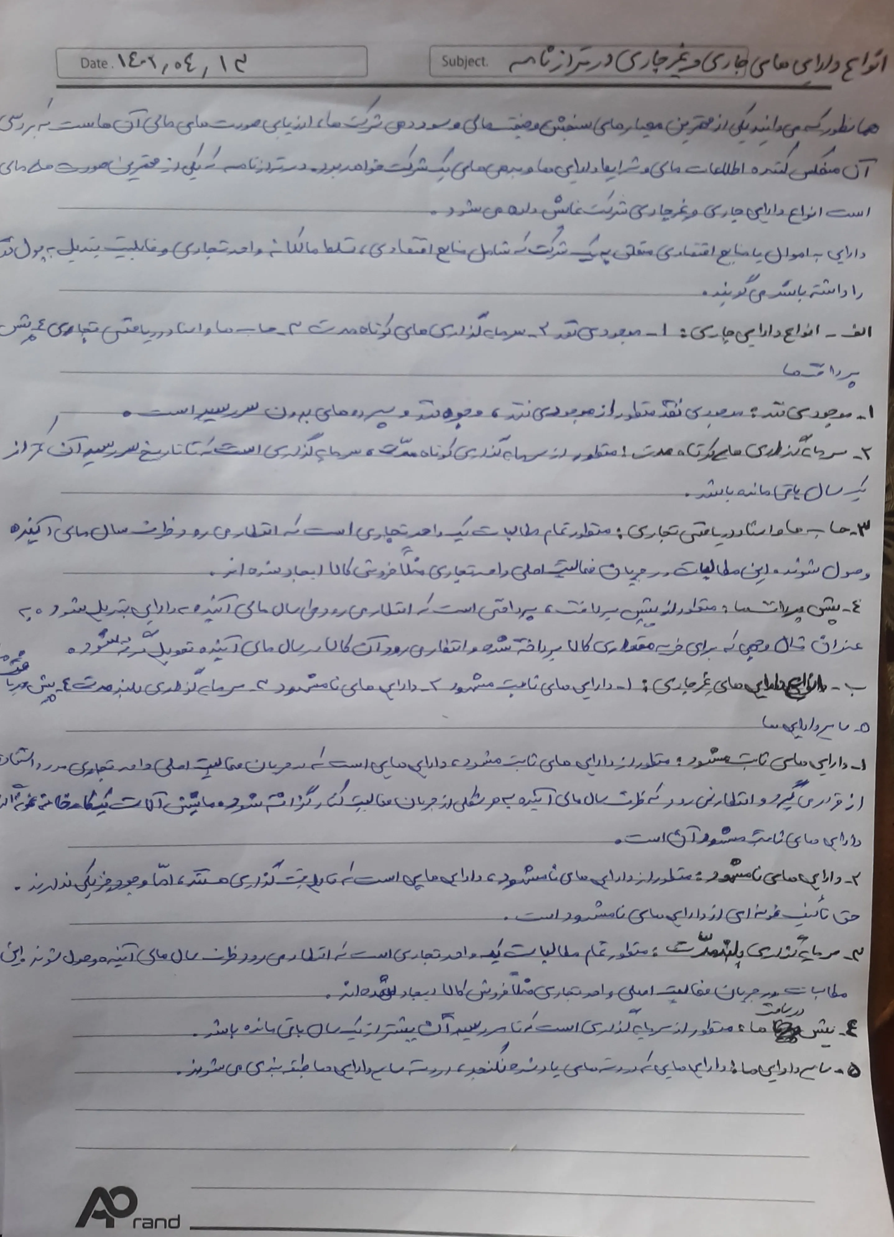 تایپ خلاصه اصول حسابداری به صورت دستنویس با خط نسبتا عالی در برگه A4 خطی نوشته شده