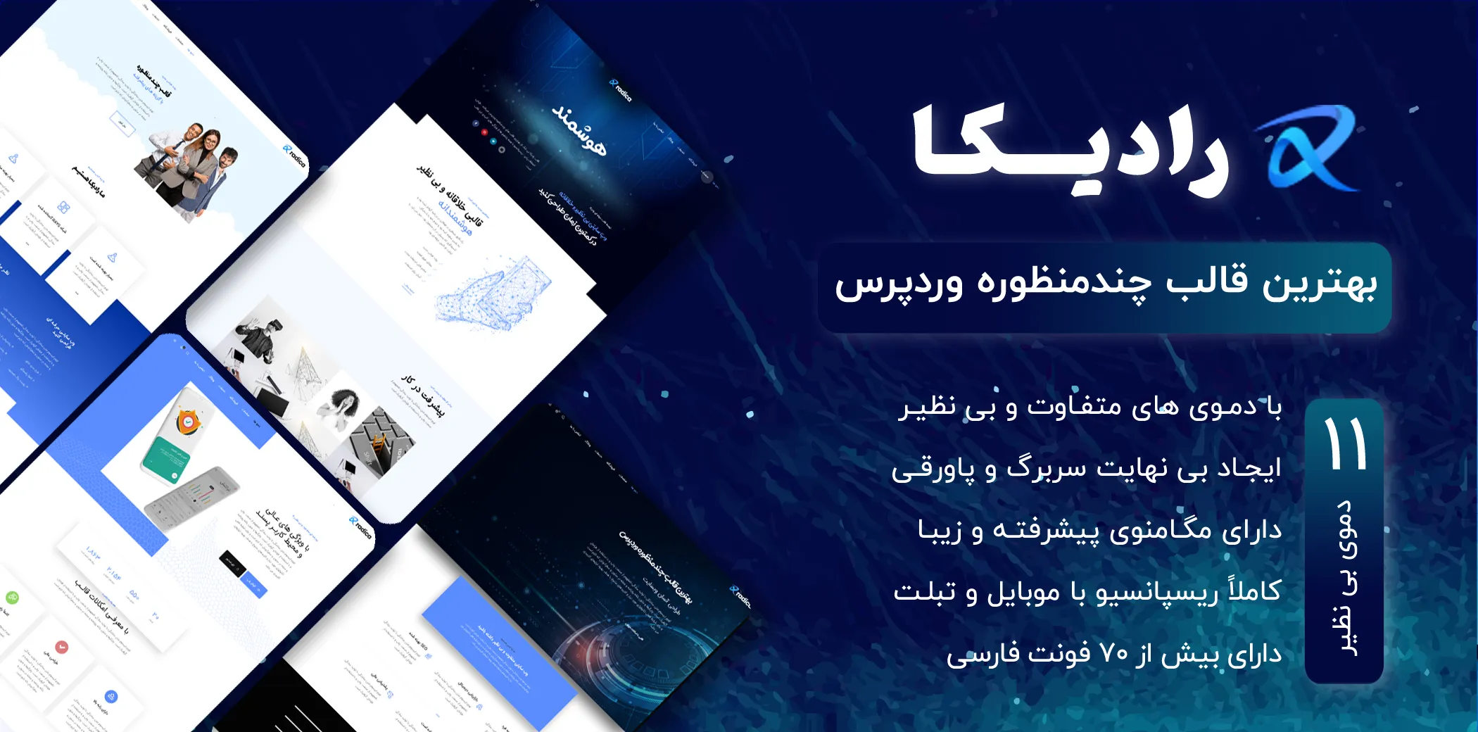 قالب Radica یکی دیگر از بهترین قالب های چند منظوره وردپرس میباشد. تیم ما این قالب را فارسی سازی و بومی سازی کرده امکاناتی همچون شمسی سازی به آن اضافه شده است