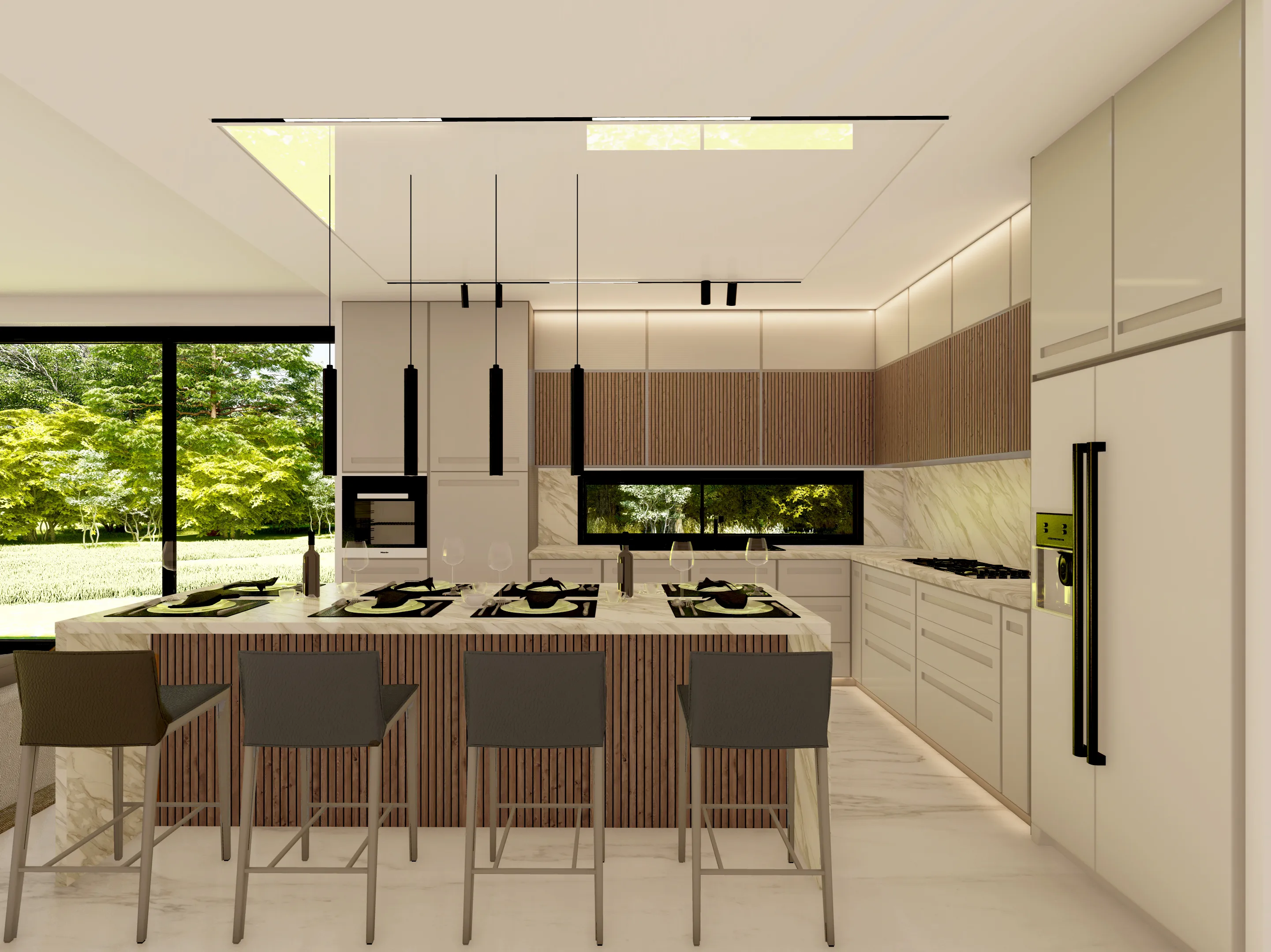 نمونه رندر های طراحی یک آشپزخانه و سالن