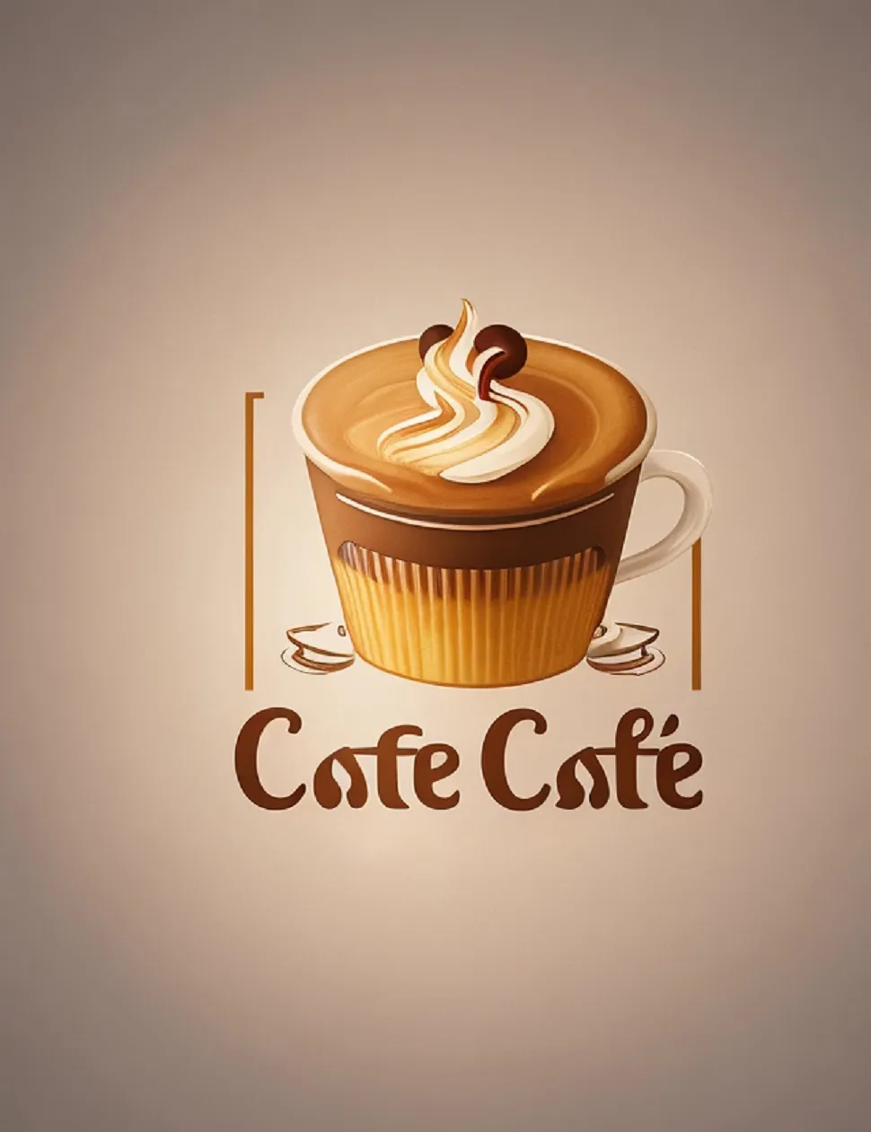 لوگو کافی شاپ با طراحی مدرن کیک لیوانی و قهوه که ترکیب شده اند