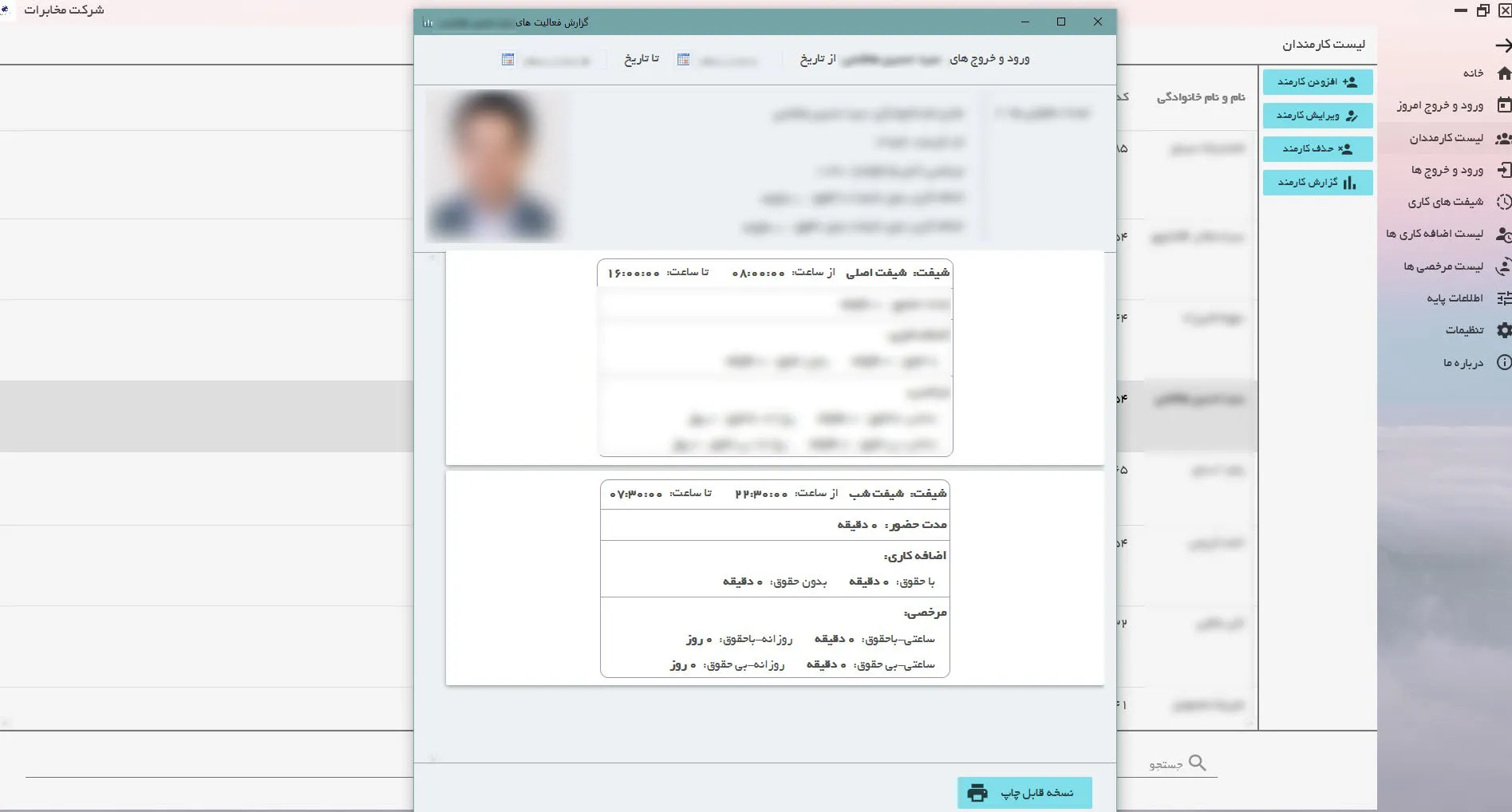 نرم افزار سازمانی ورود و خروج کارمندان
