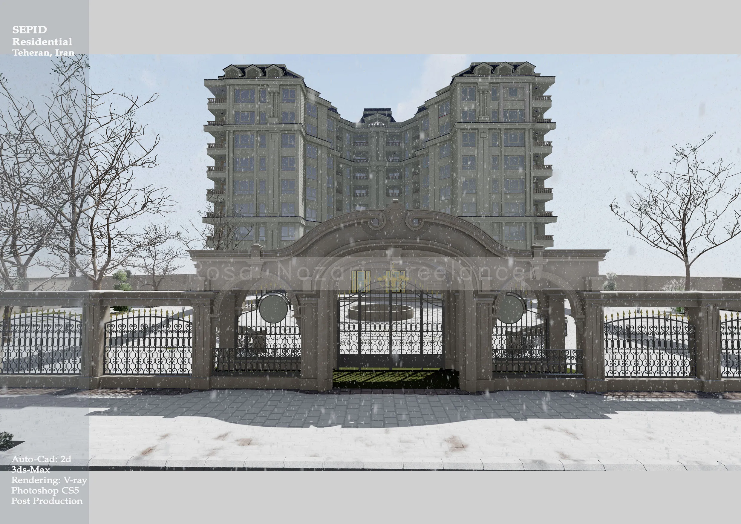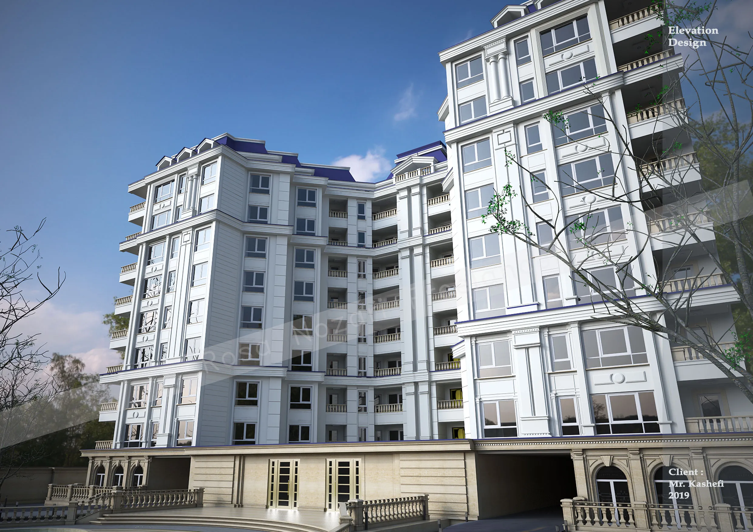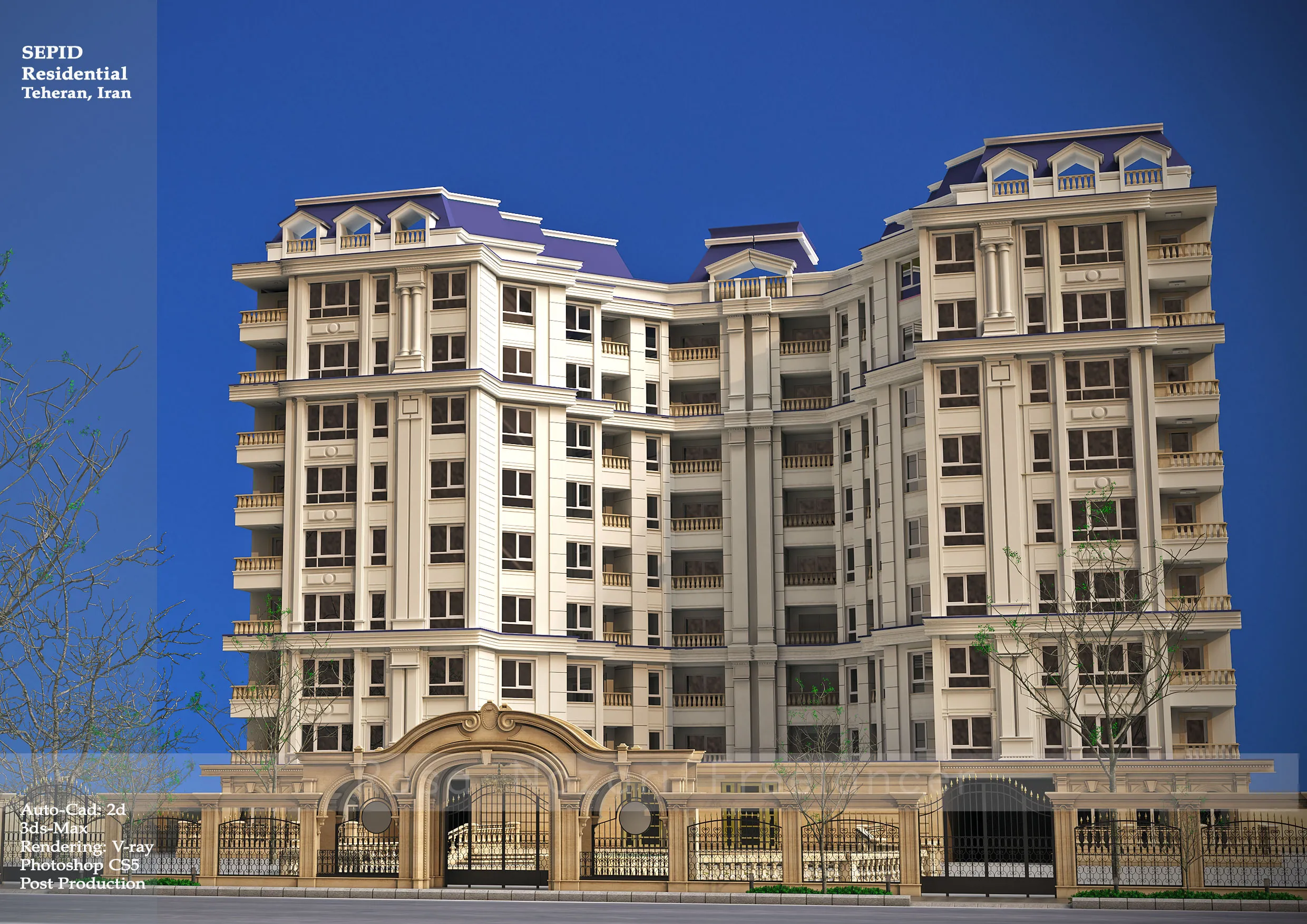 مدلسازی و رندرینگ نمای ساختمان مسکونی