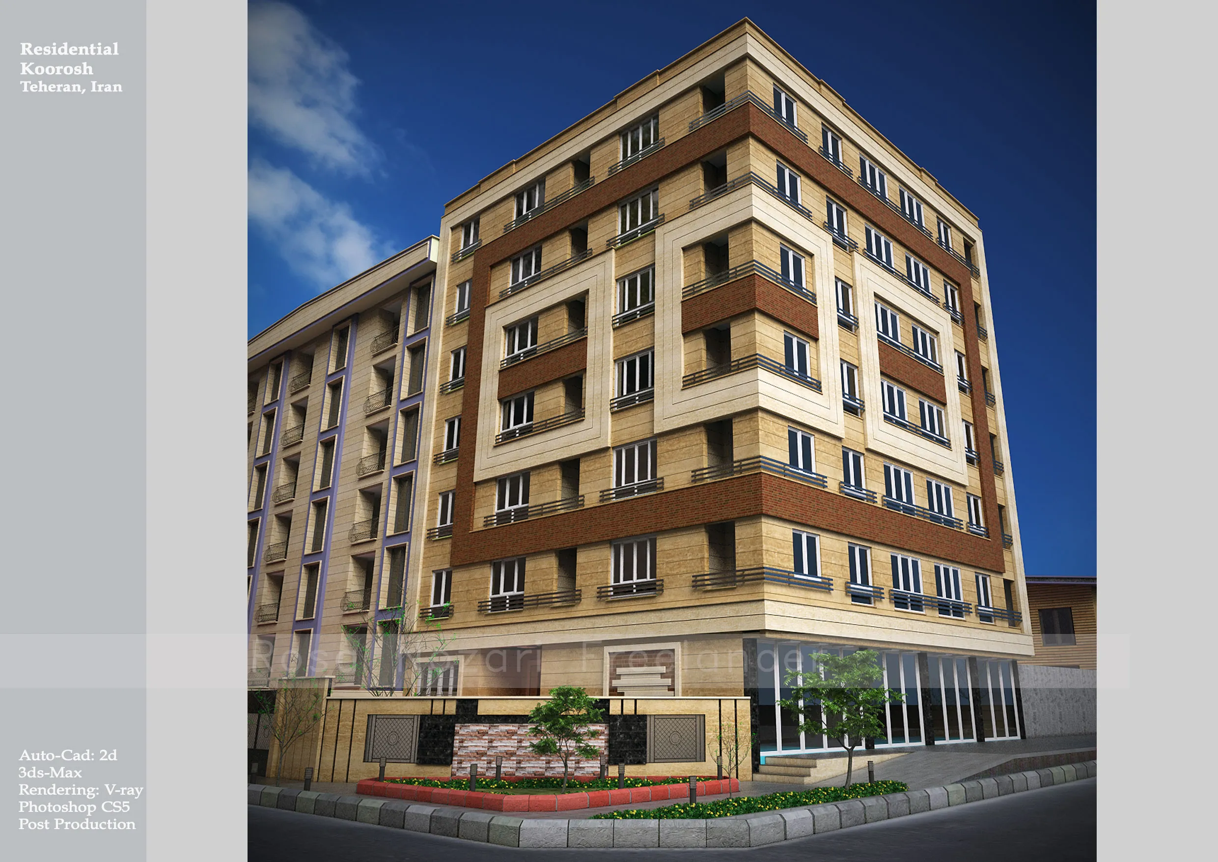 مدلسازی و رندرینگ نمای ساختمان مسکونی
