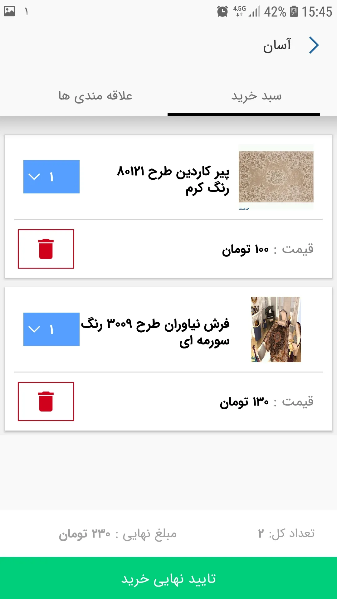 پیاده سازی برنامه اندروید آسان فرش
