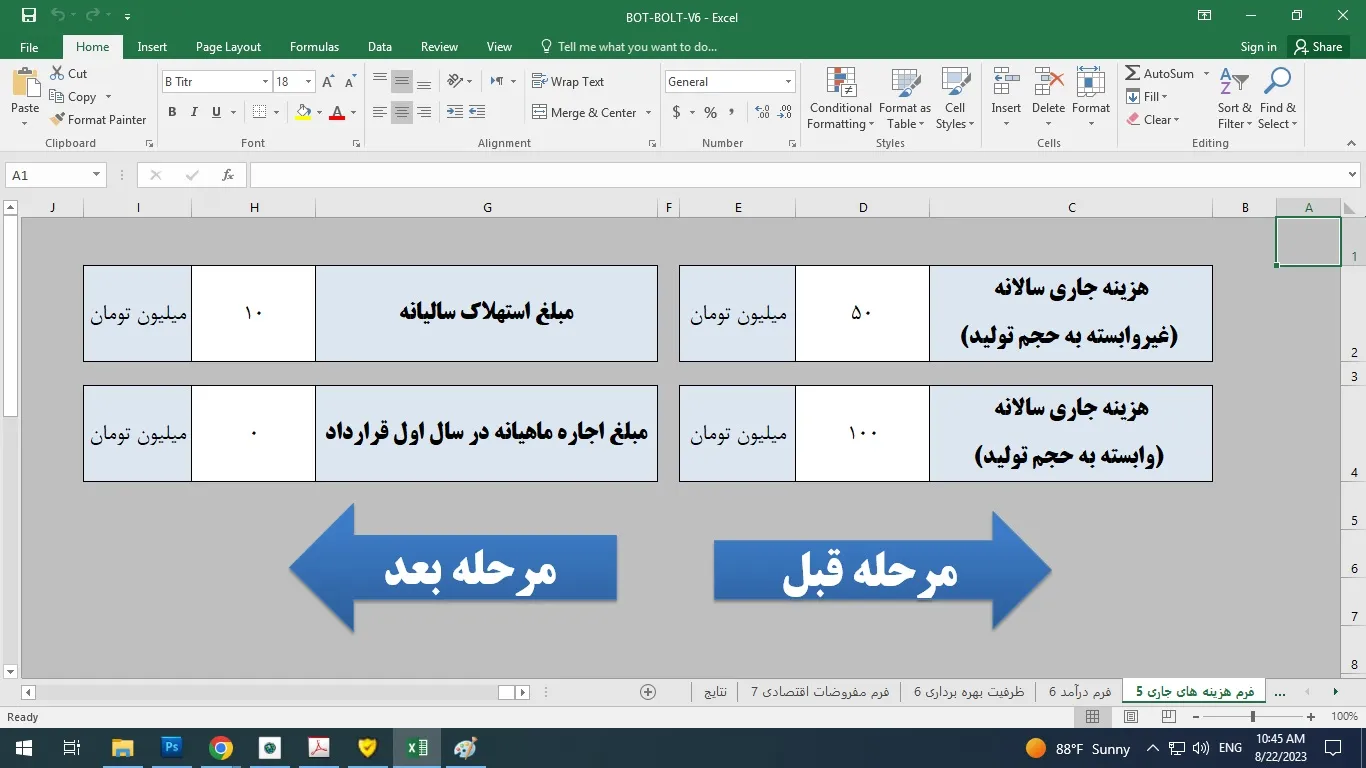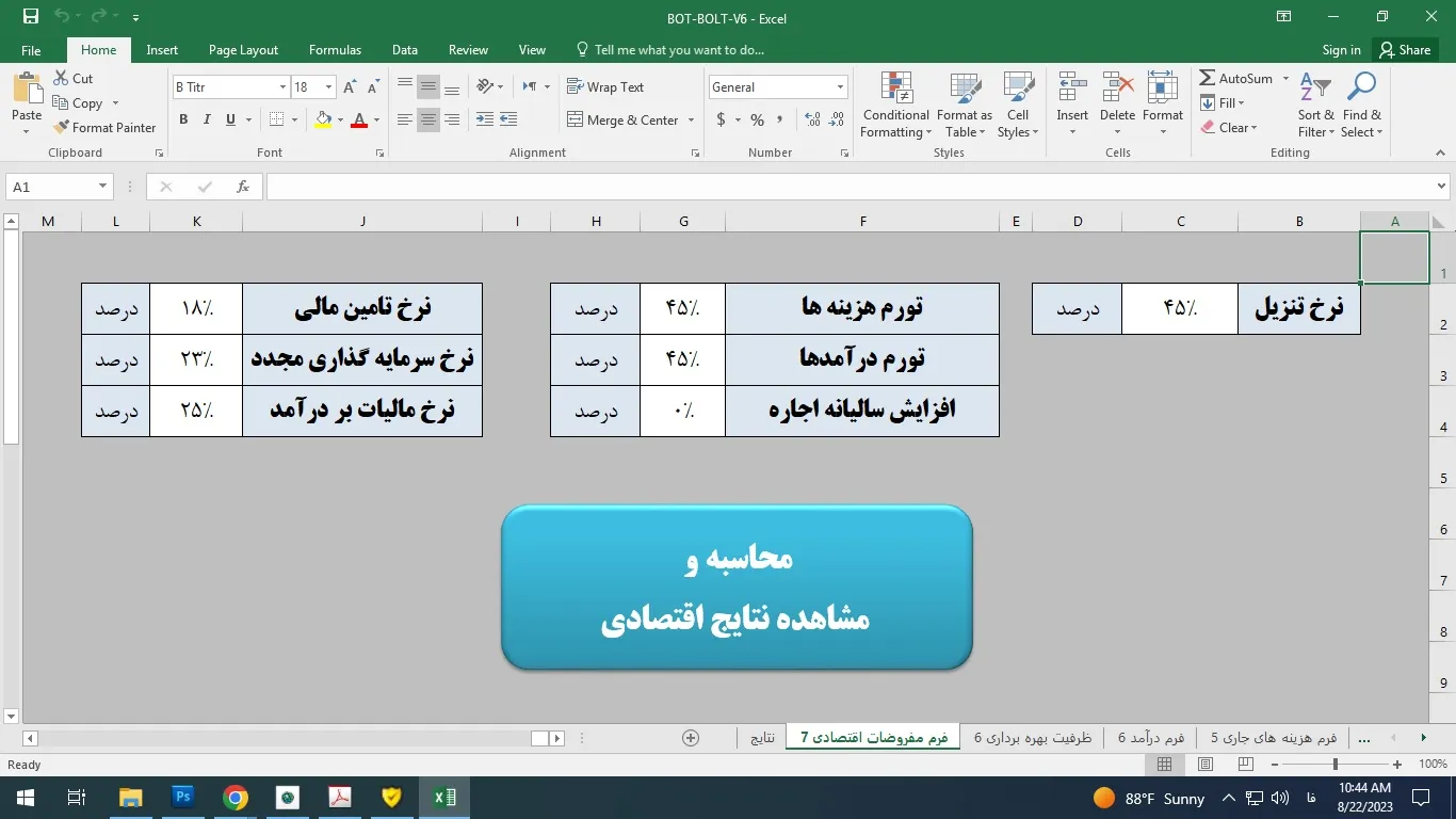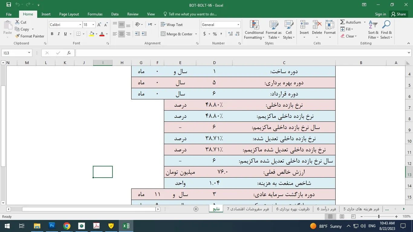 در این نمونه کار فایل اکسلی را مشاهده می کنید که توسط خودم جهت محاسبات بخش مالی طرح توجیهی BOT و BOLT طراحی شده است به طوریکه با ورود اطلاعات مالی لازم جهت راه اندازی یک کسب و کار، شاخص های مالی به صورت اتوماتیک تولید و ارائه می شوند.