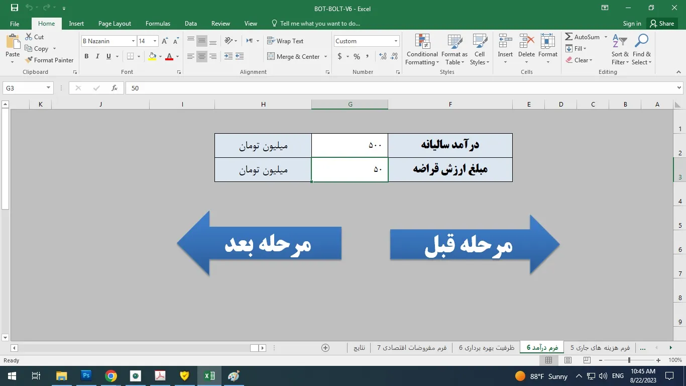 اکسل جهت طرح توجیهی