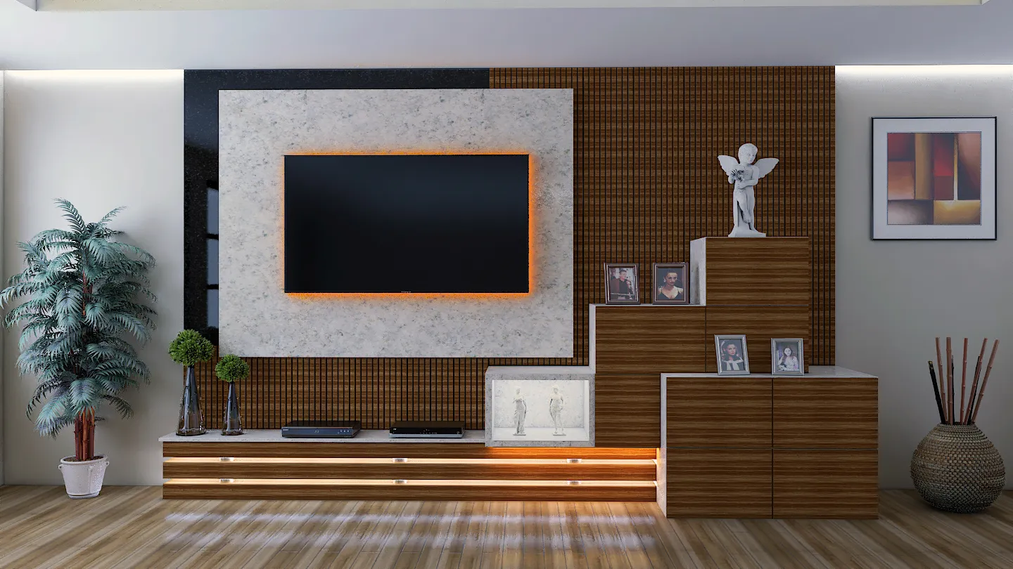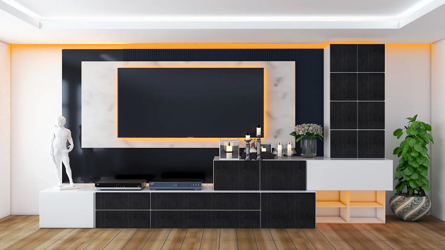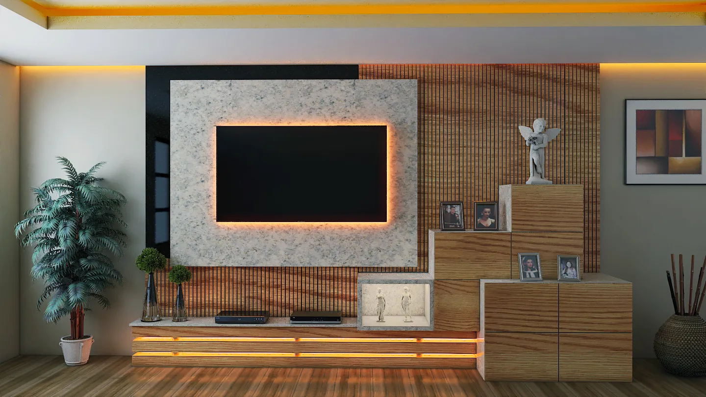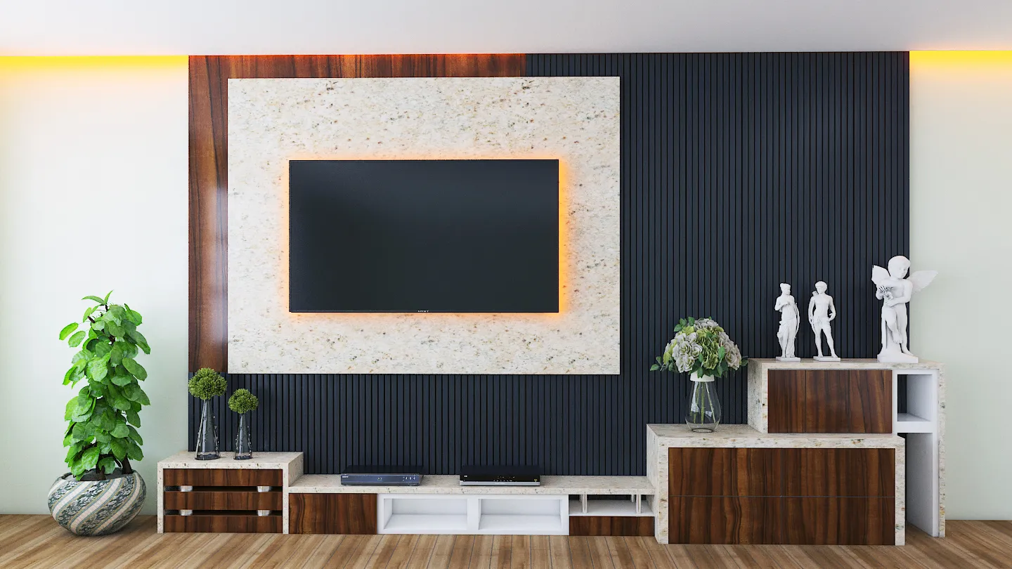 طراحی tv wall به همراه نور پردازی و جزئیات اجرایی