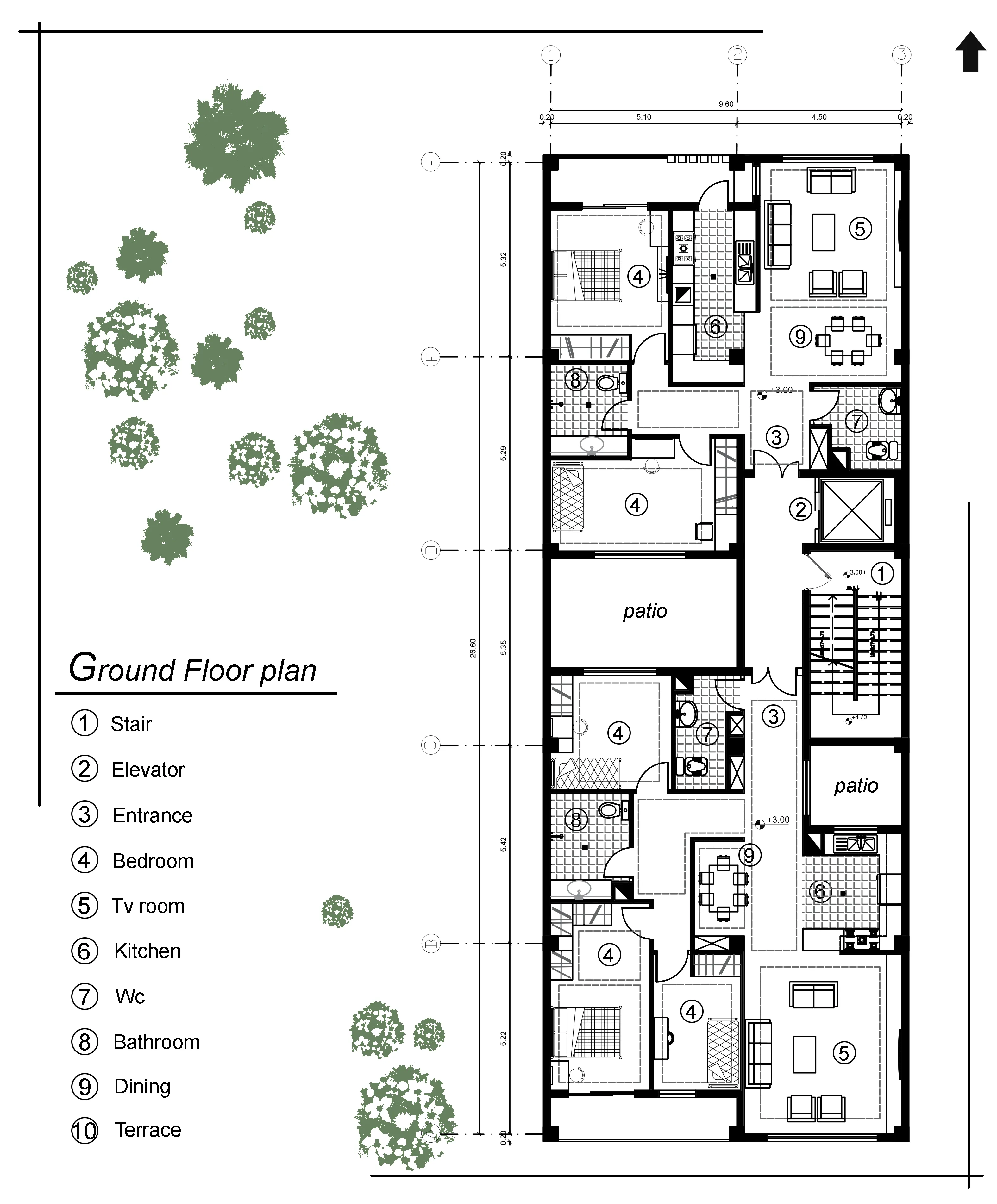 تعداد طبقات: 5 طبقه+ پیلوت سازه: بتنی مساحت زمین: 450 متر مربع زیرزمین: پارکینگ همکف: لابی و پارکینگ اول و دوم و سوم: دو واحد دو خواب و سه خواب چهارم و پنجم: یک واحد پنت هاوس . یک واحد سه خواب