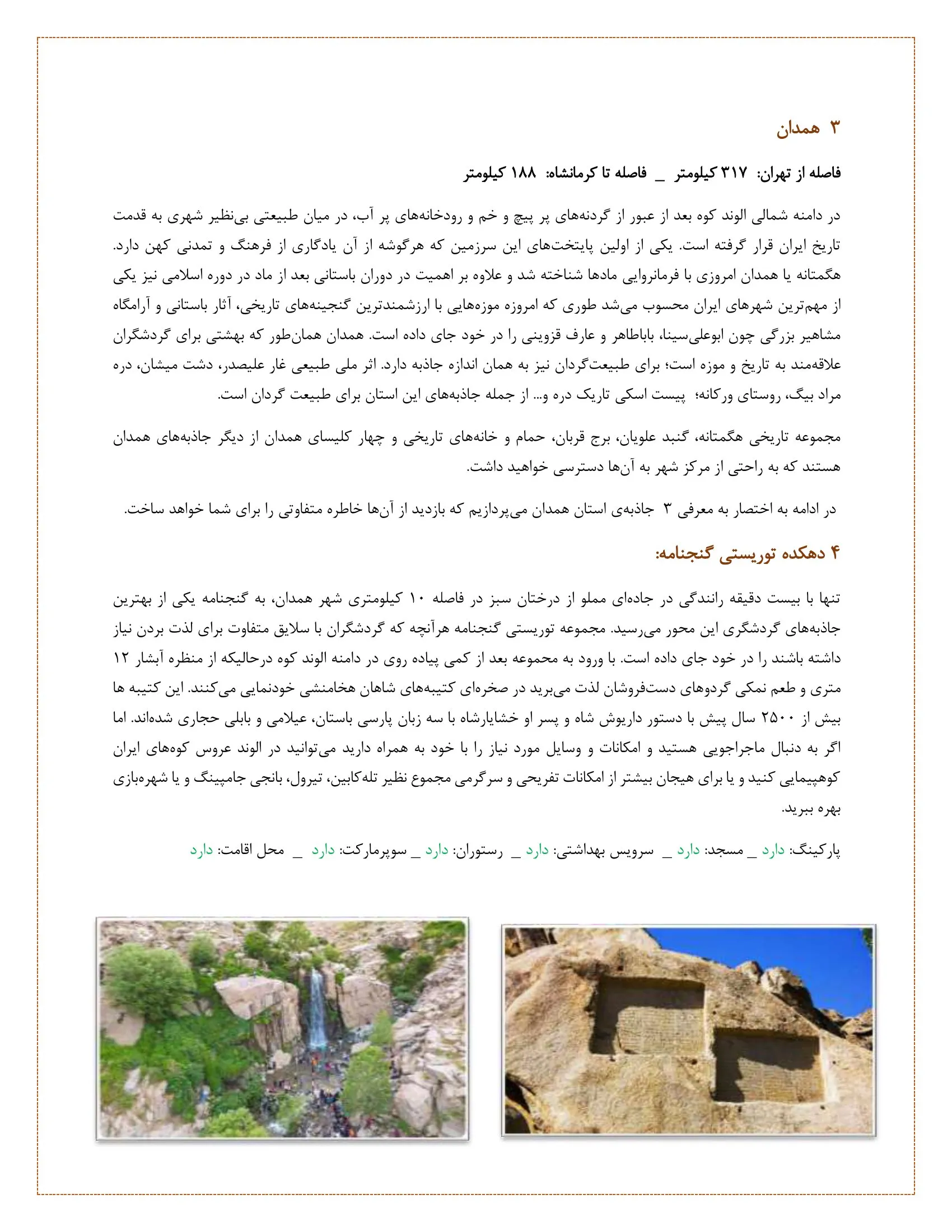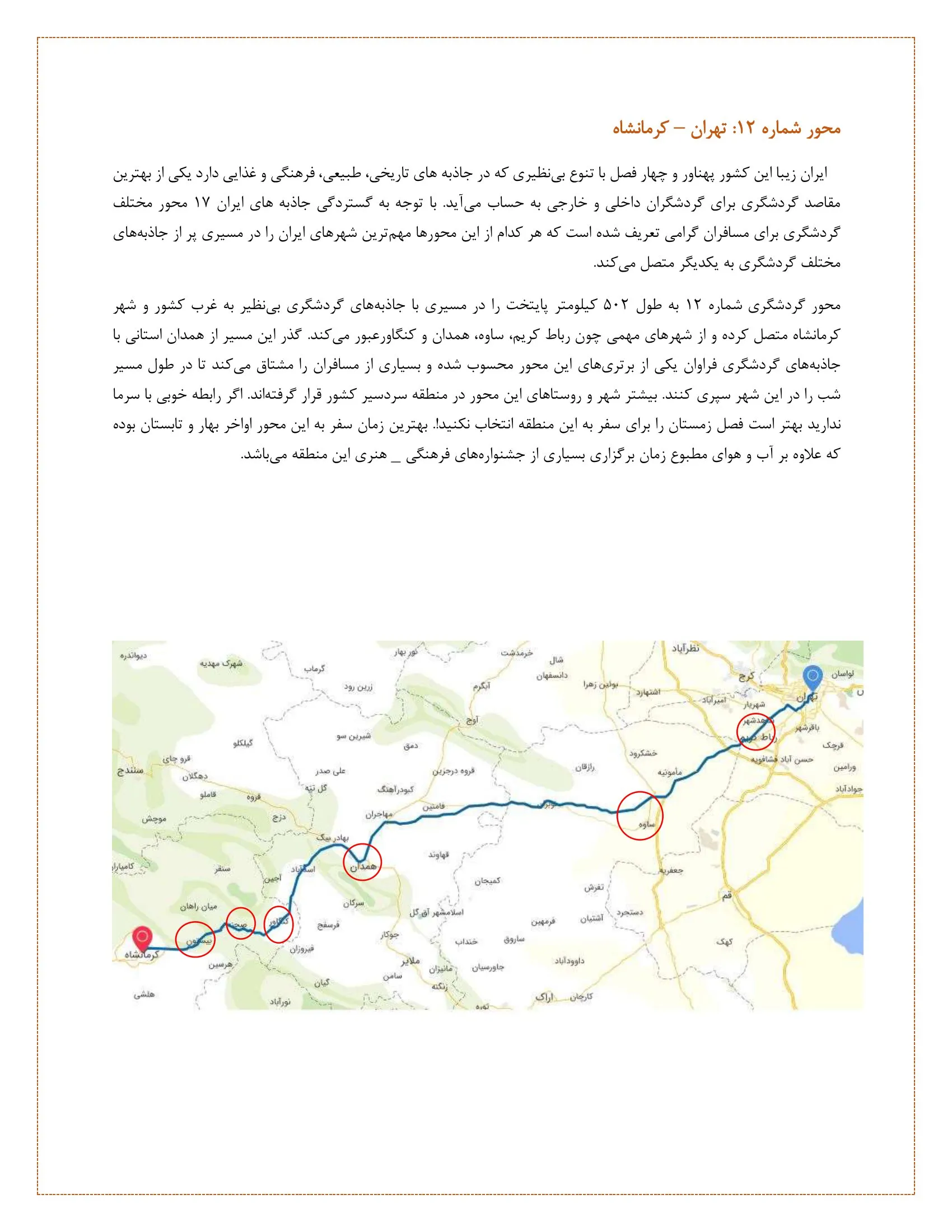 این نمونه کار به منظور معرفی 17 مسیر اصلی گردشگری در ایران طراحی شده که علاوه بر اطلاعات کلی راجع به آن محور، امکان گردشگری موجود در مسیر و جاده نیز معرفی شده اند. این پروژه به درخواست سامانه راهداری ایران 141 ایجاد و در حال به روز رسانی است.